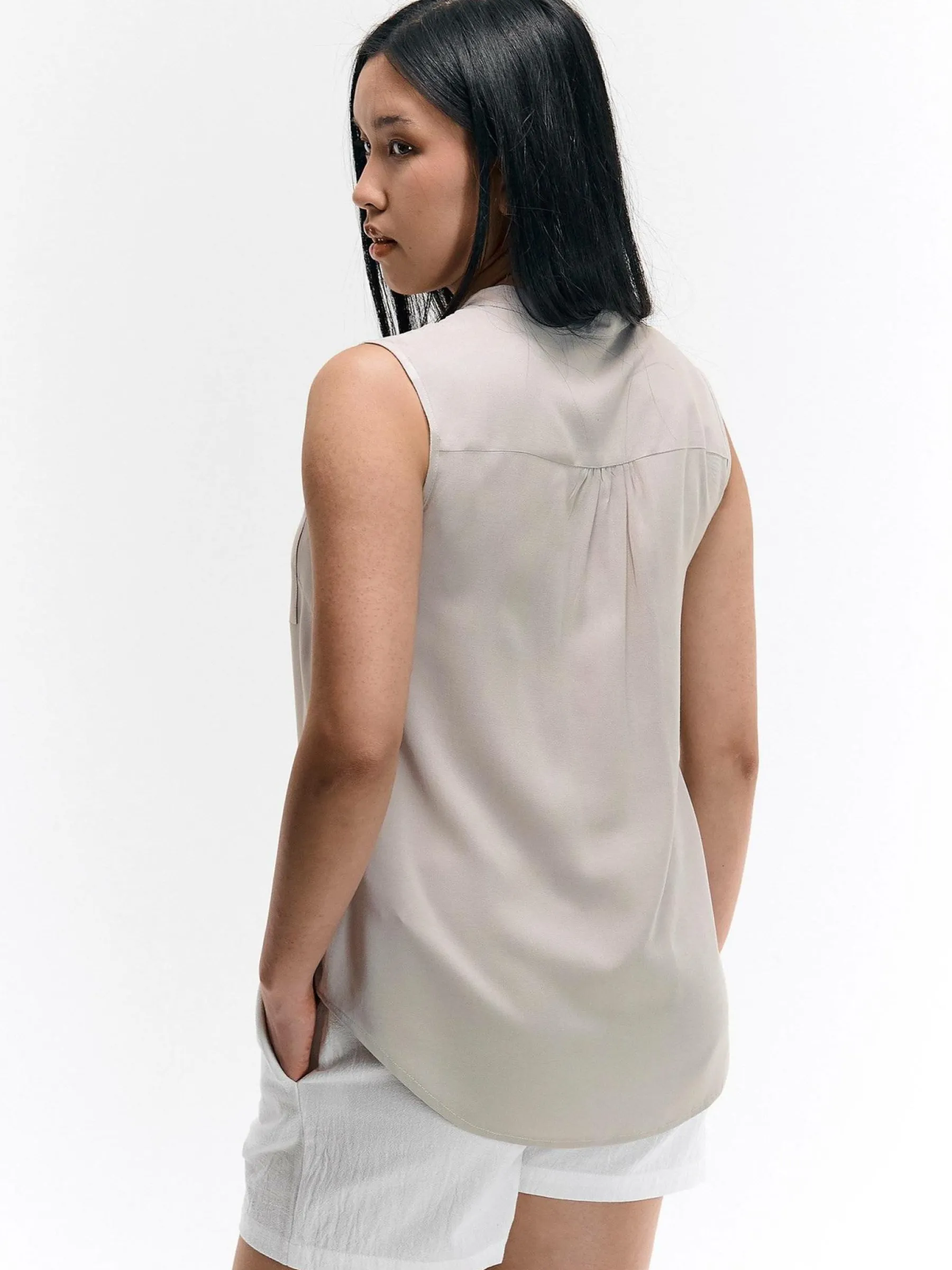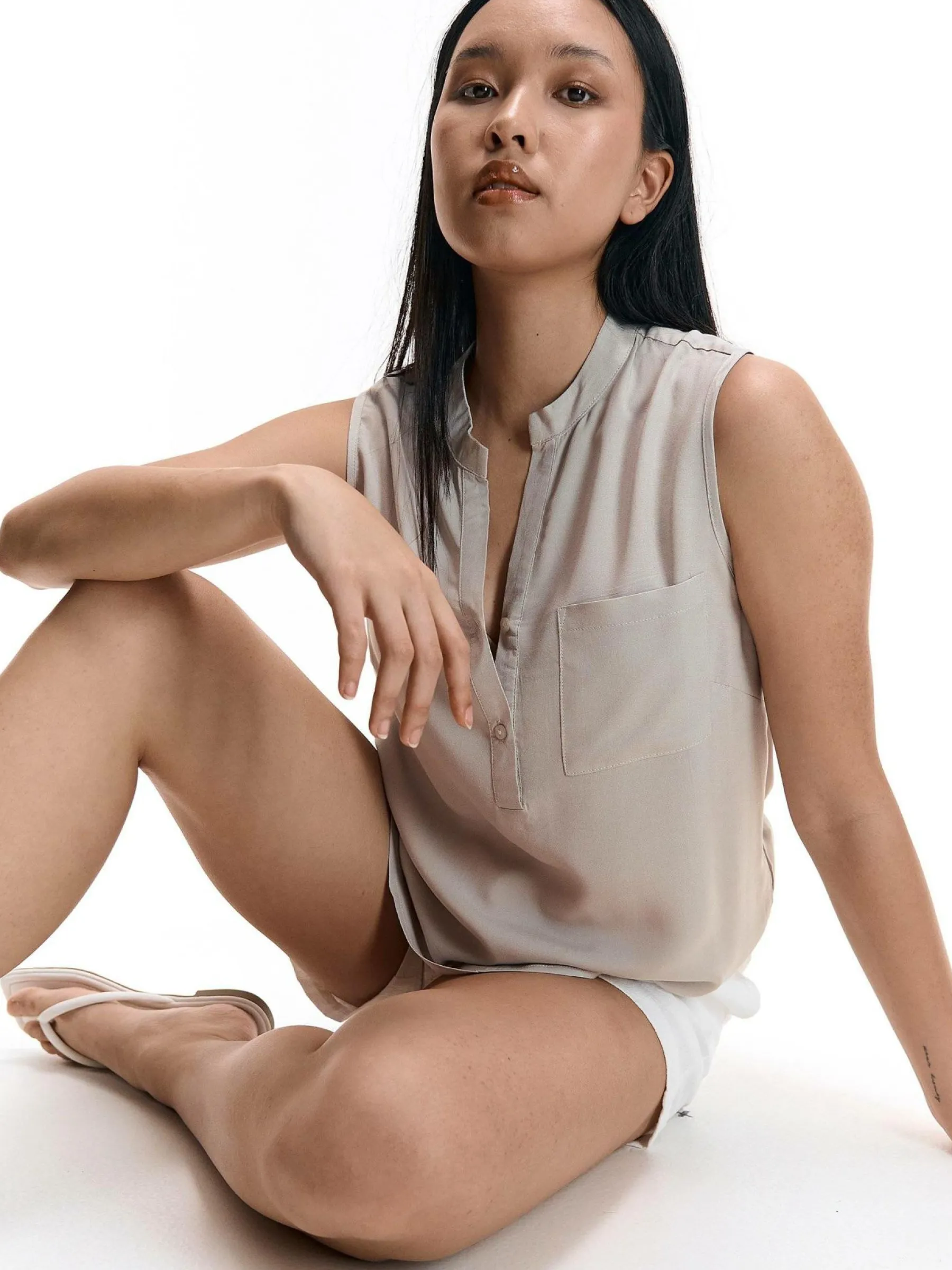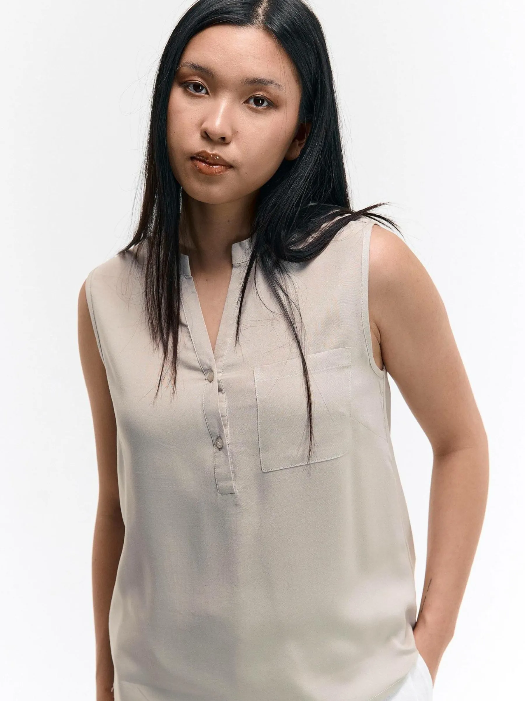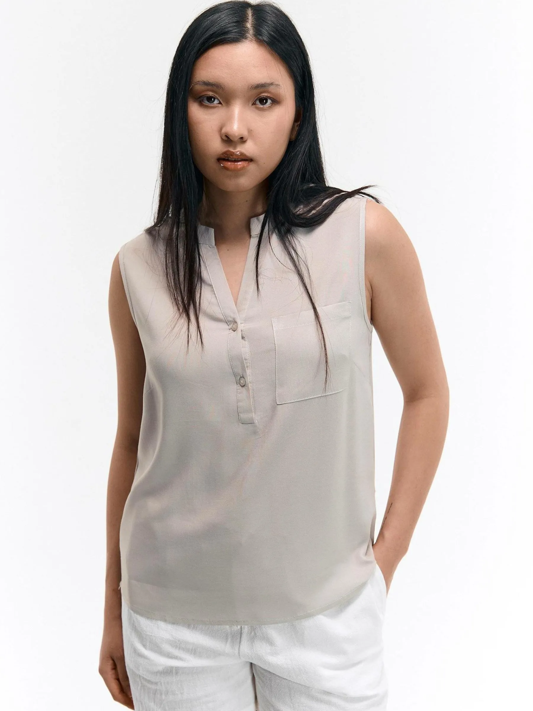 Kolor: szaryKrój: regularTyp: top, bluzkaRekaw: bez rękawówDługość: krótkiPattern style: pojedynczy kolorDetal: z…