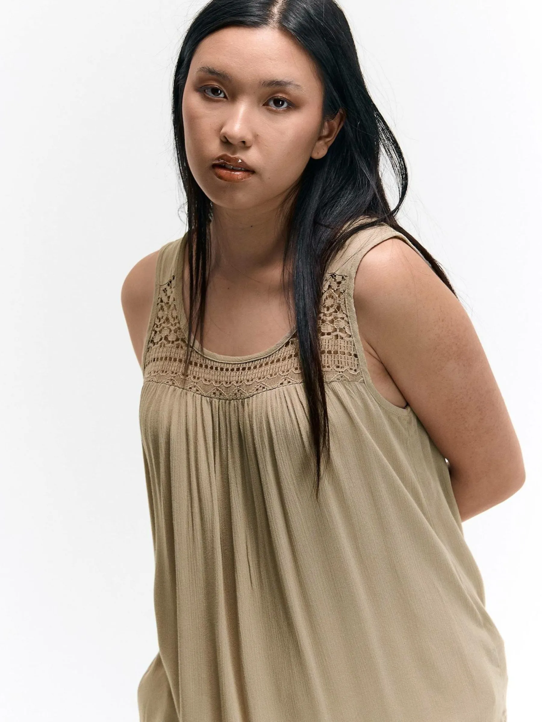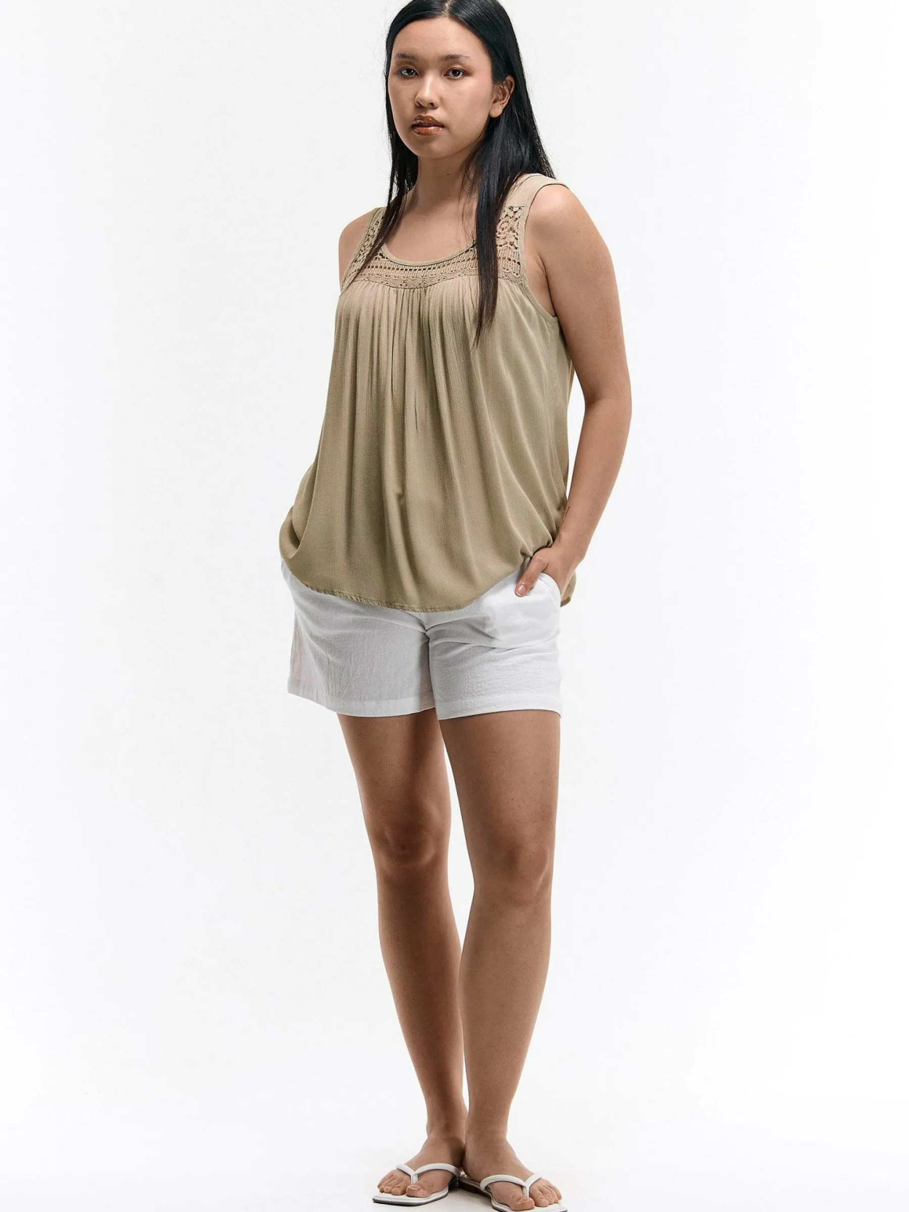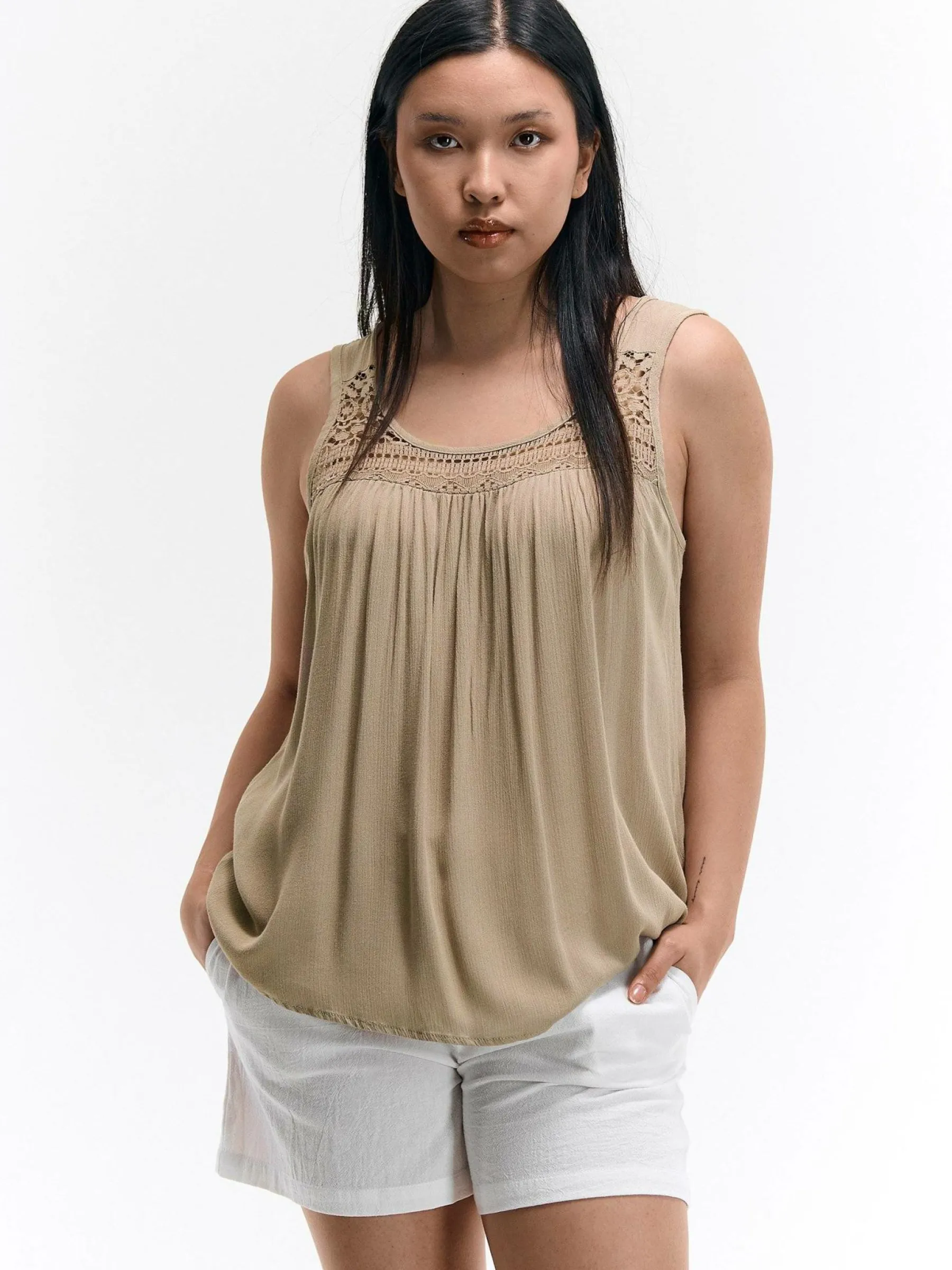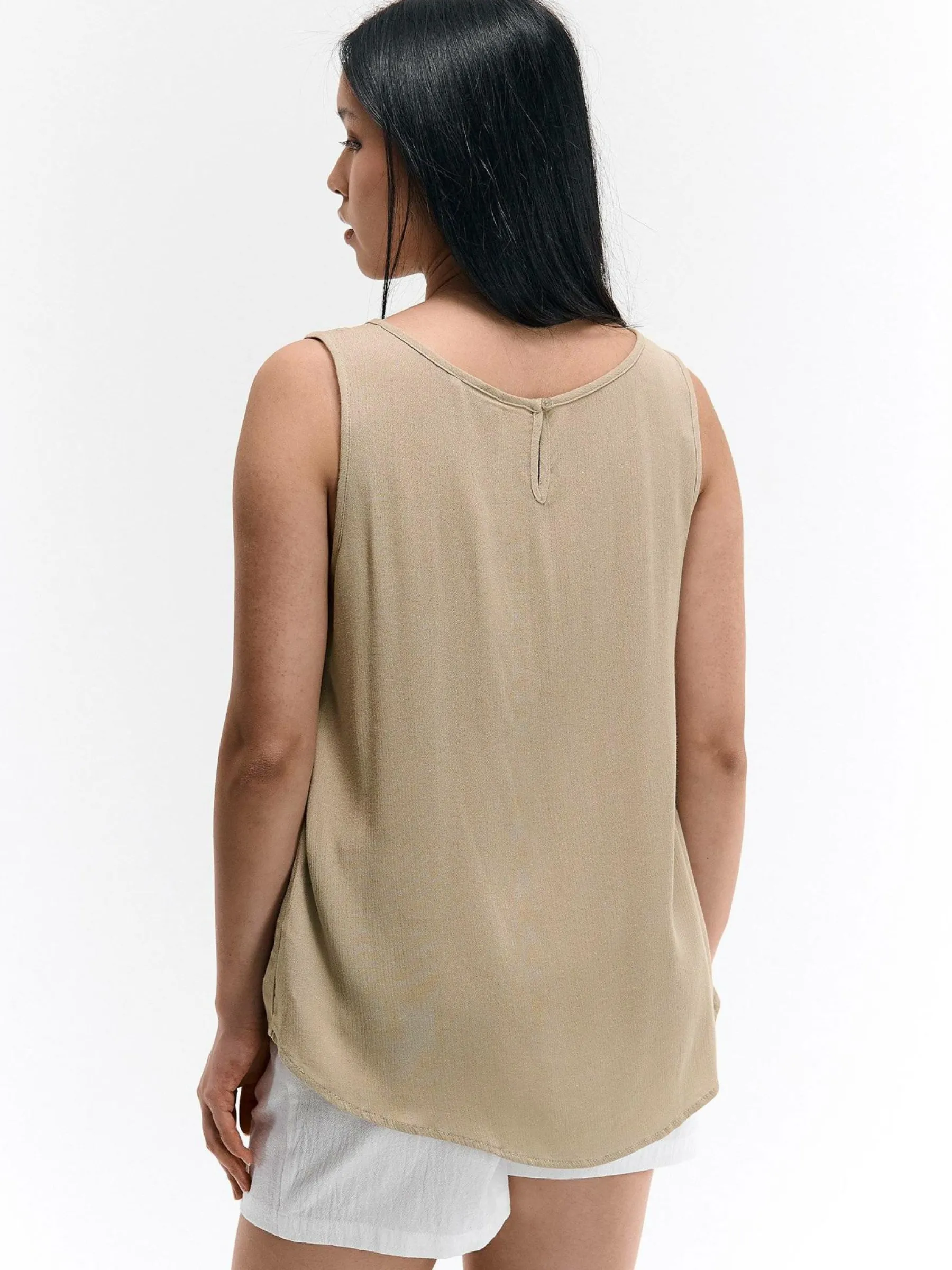 Kolor: beżowyKrój: z marszczeniemTyp: bluzka, topRekaw: bez rękawówDługość: krótkiPattern style: pojedynczy kolo…