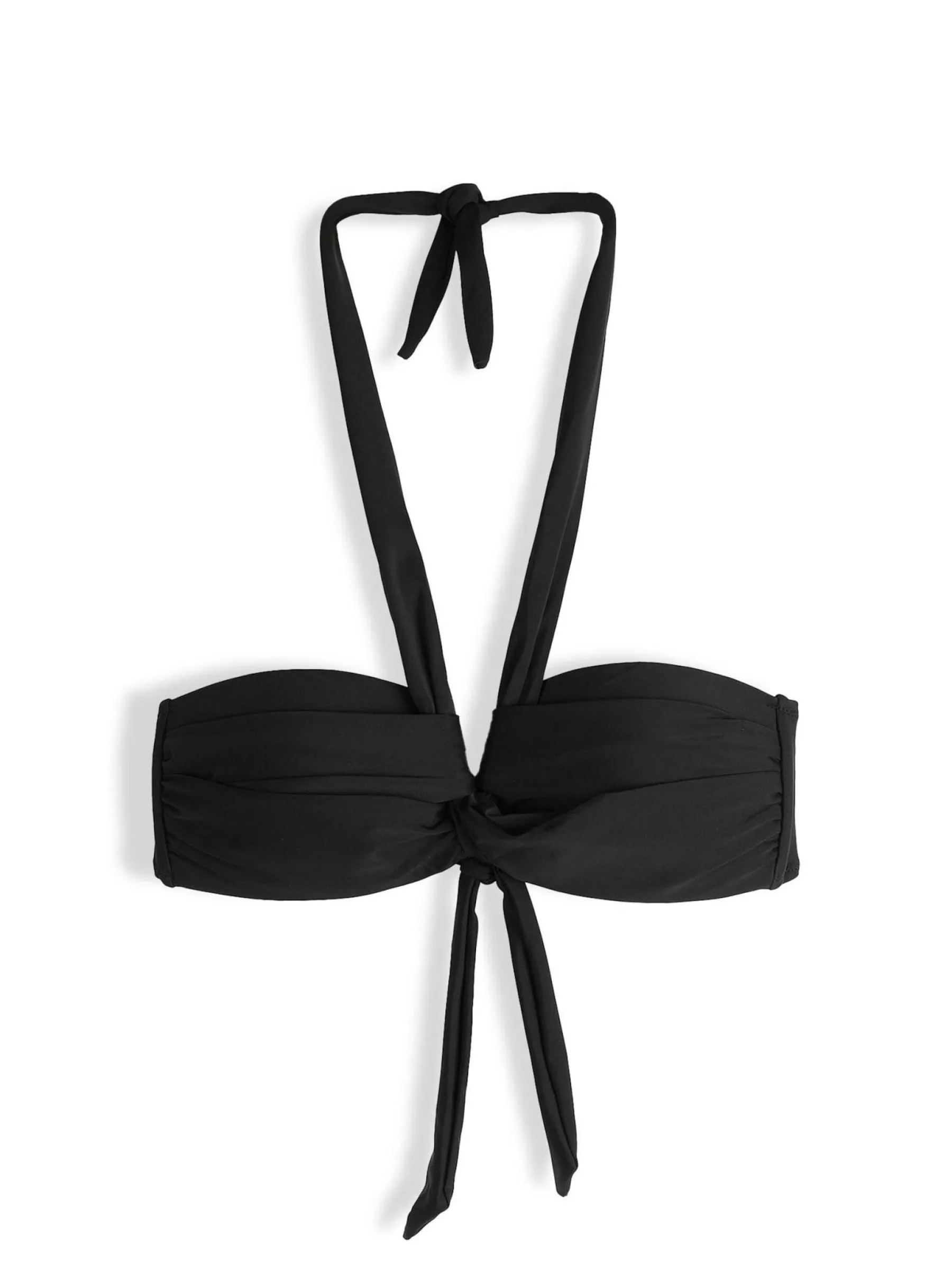 Kolor: czarnyKrój: bikiniTyp: góra od bikiniPattern style: pojedynczy kolorDetal: wzmocniony, z wiązaniem na szyiPłe…