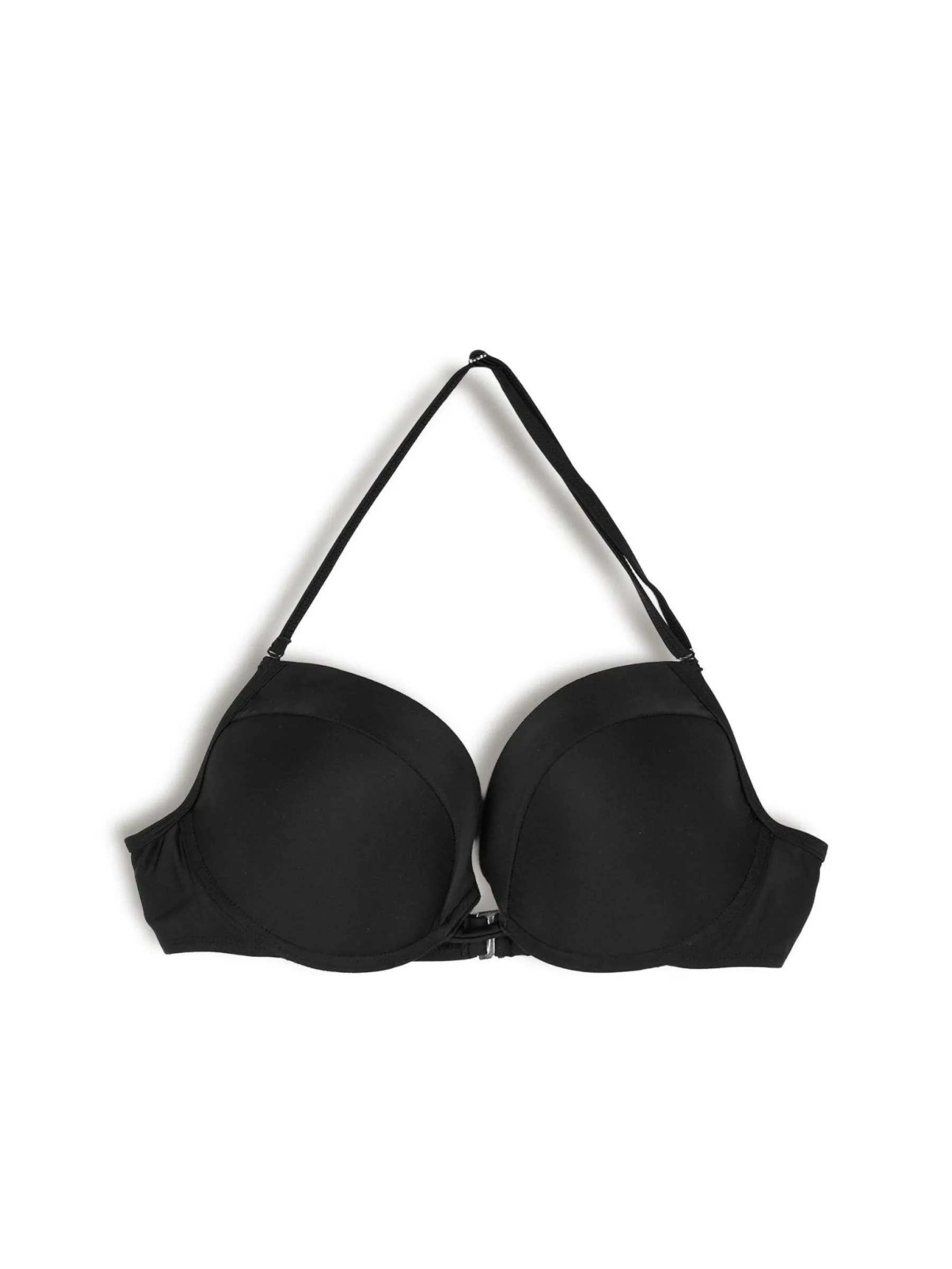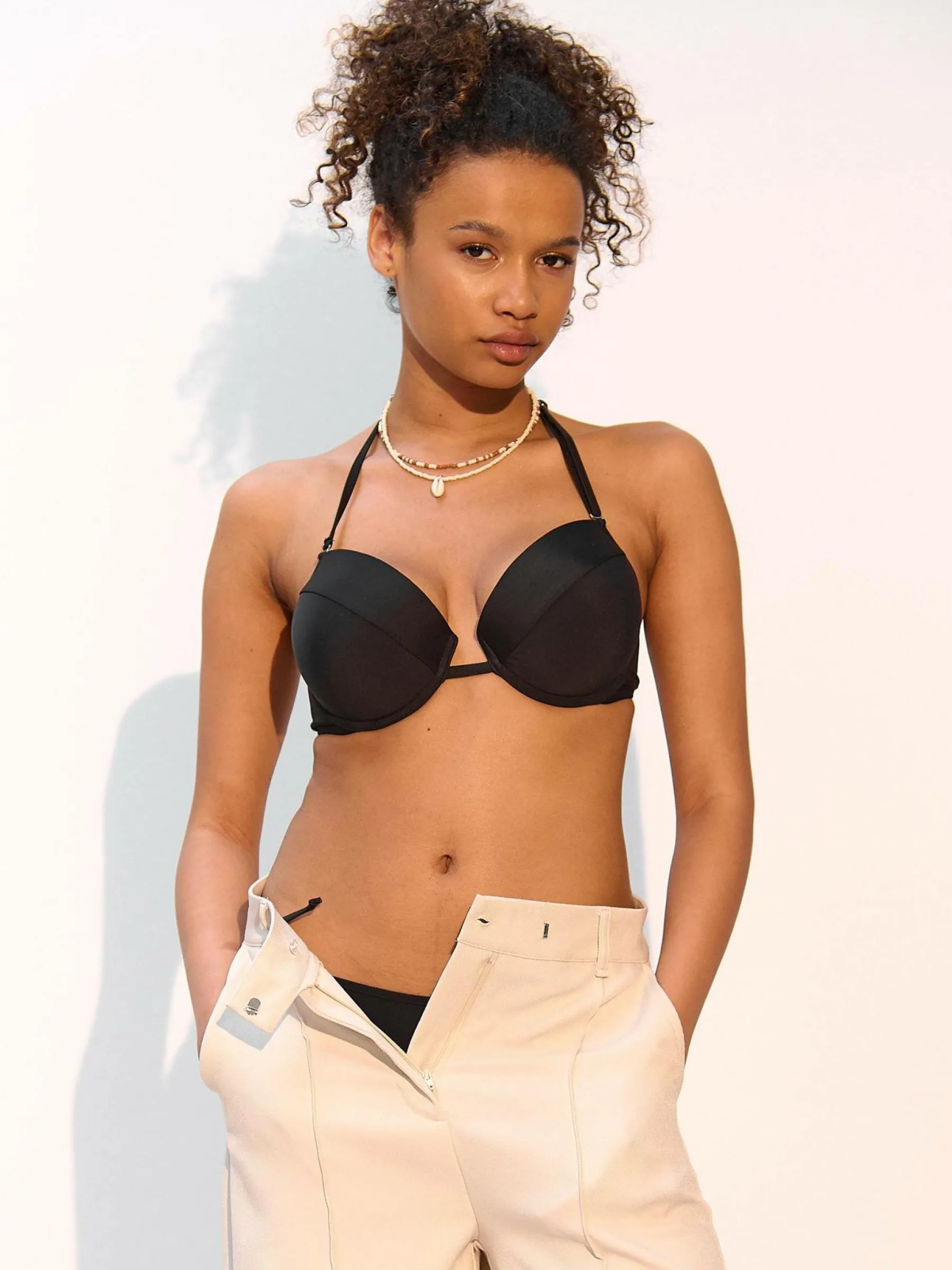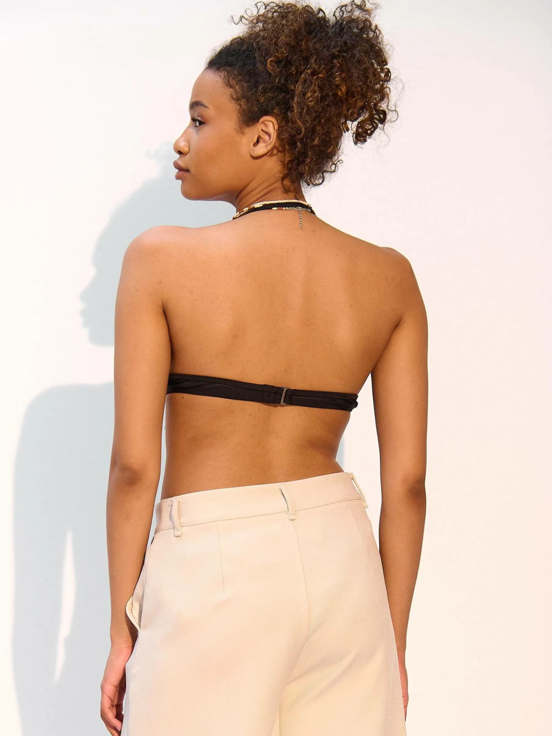 Kolor: czarnyKrój: bikiniTyp: góra od bikiniPattern style: pojedynczy kolorDetal: z kośćmiMateriał: syntetycznePłe…