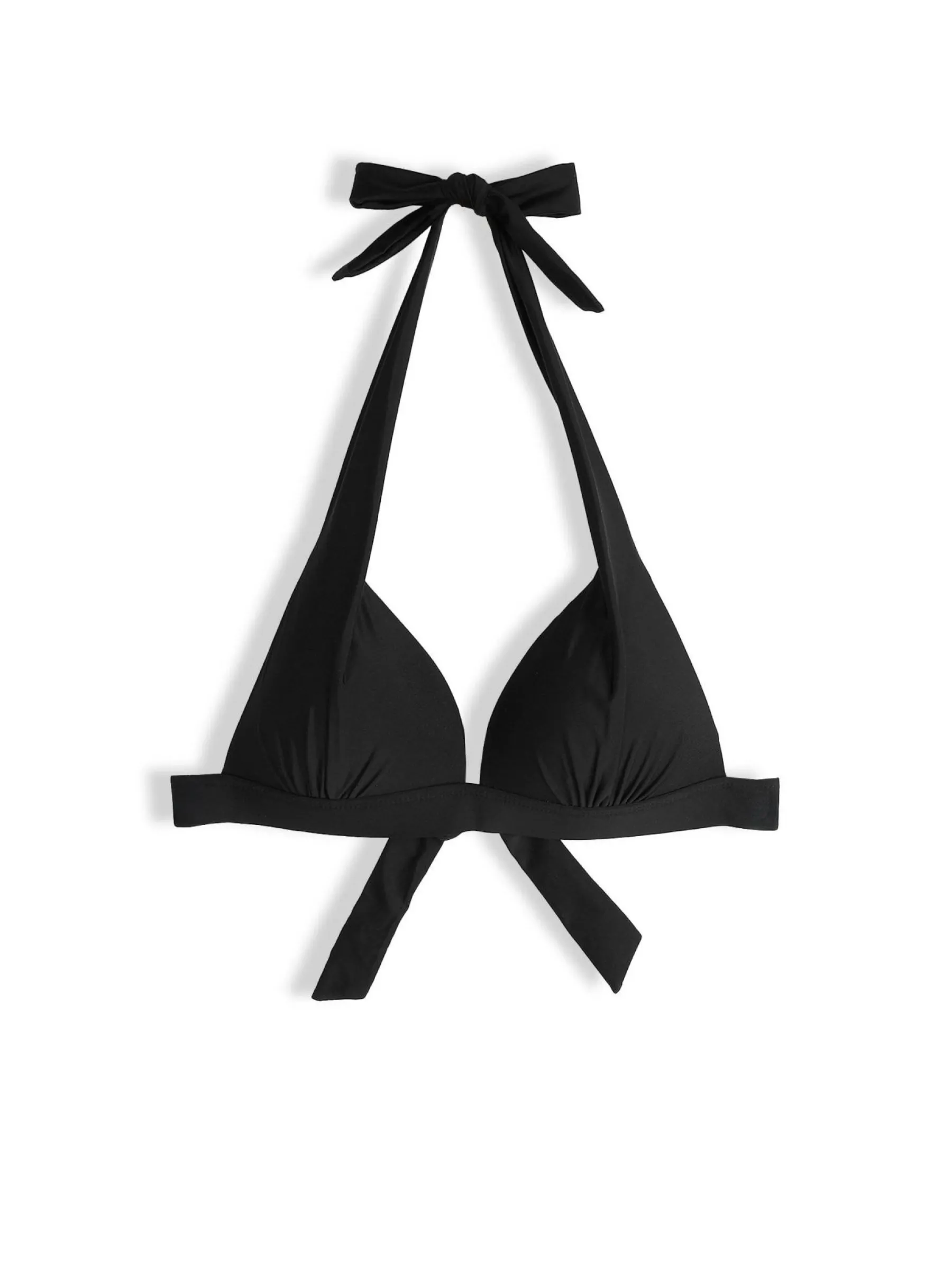 Kolor: czarnyKrój: bikiniTyp: góra od bikiniPattern style: pojedynczy kolorDetal: wzmocniony, z wiązaniem na szyi, tr…
