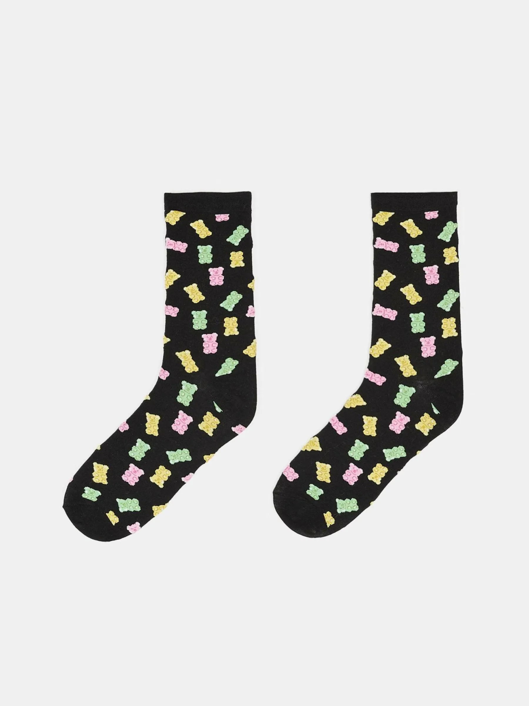 Kolor: czarnyKrój: wysokie skarpetyTyp: skarpetyPattern style: wzorzysteMateriał: mieszanyPłeć: kobietyOkazja: odzie…