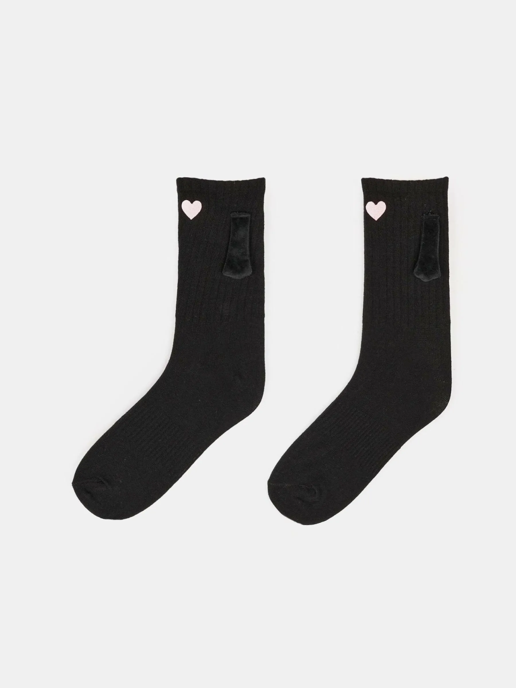Kolor: czarnyKrój: wysokie skarpetyTyp: skarpetyPattern style: pojedynczy kolor, żebrowanyDetal: z haftemMateriał: mi…