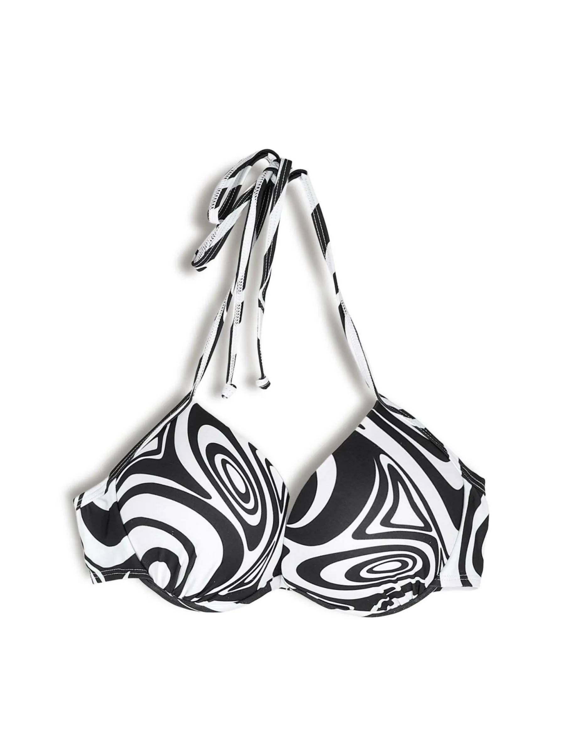 Kolor: czarnyKrój: bikiniTyp: góra od bikiniPattern style: wzorzysteDetal: z wiązaniem na szyi, wzmocniony, z kośćm…