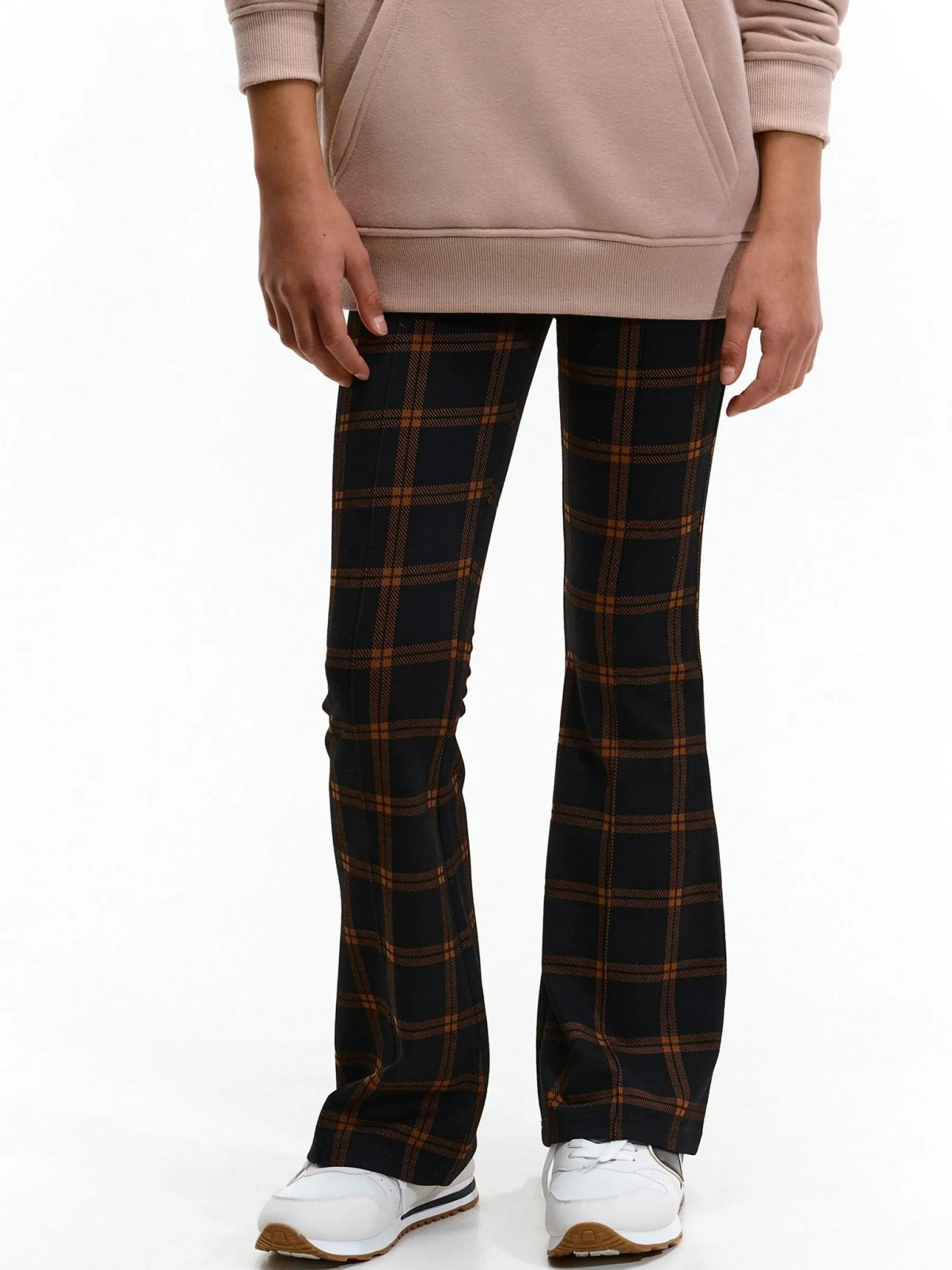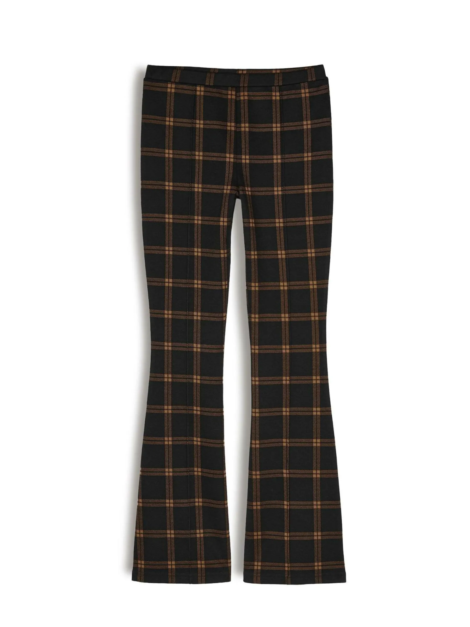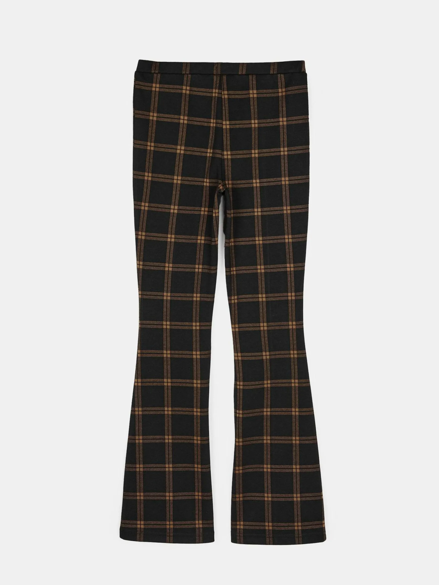 Kolor: czarnyKrój: dzwonTyp: spodnieDługość: dlugiePattern style: w krate, wzorzysteDetal: z elastyczną opaskąMate…