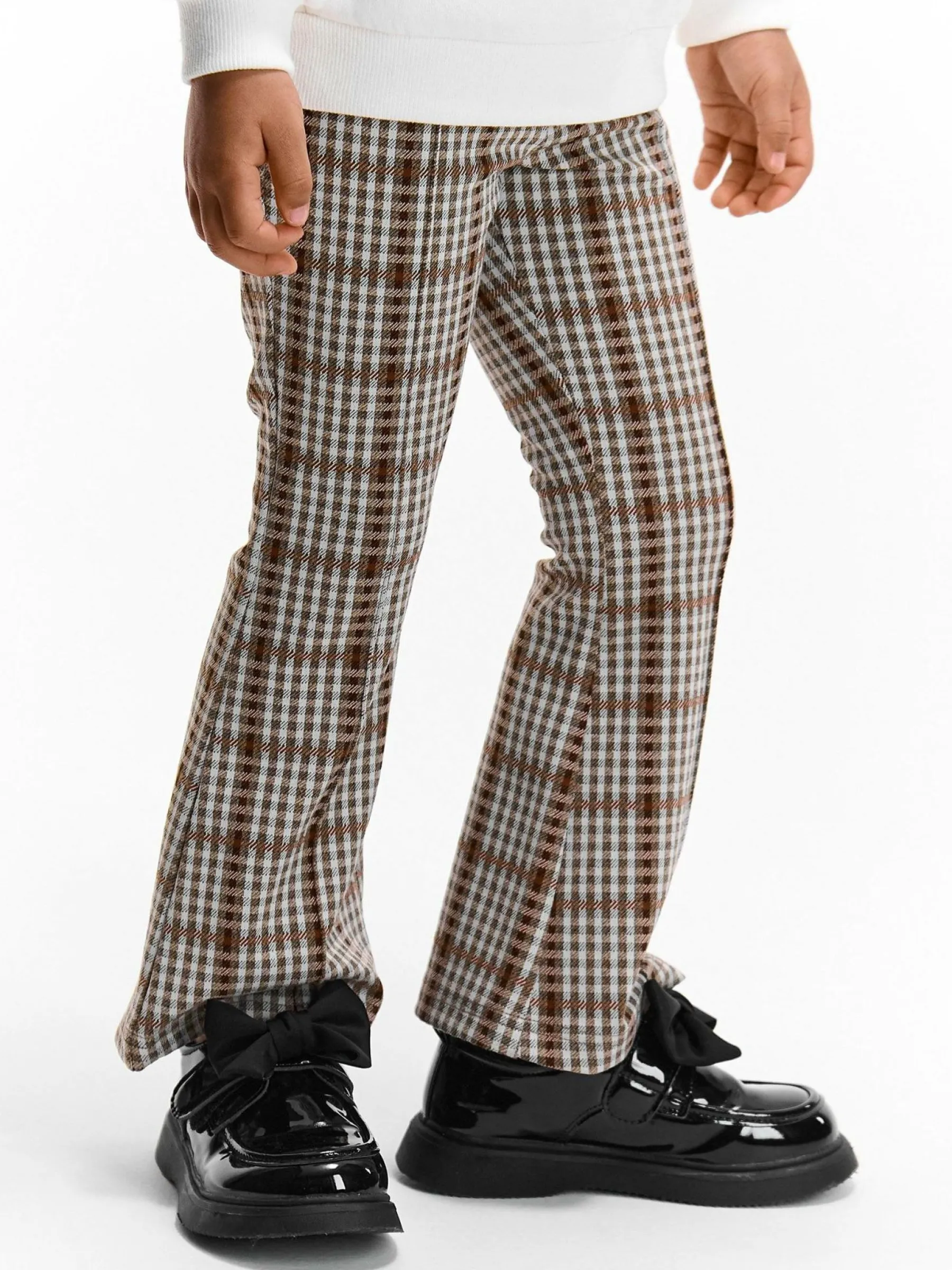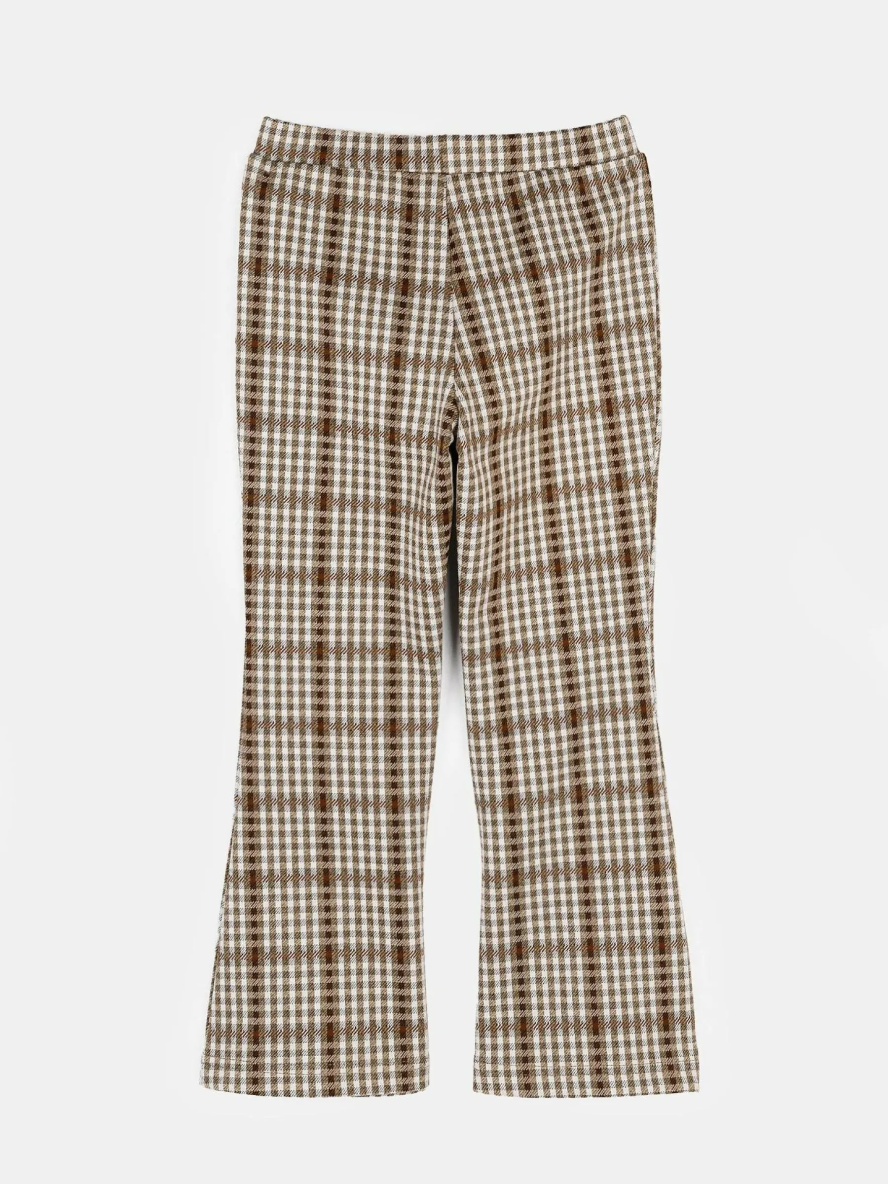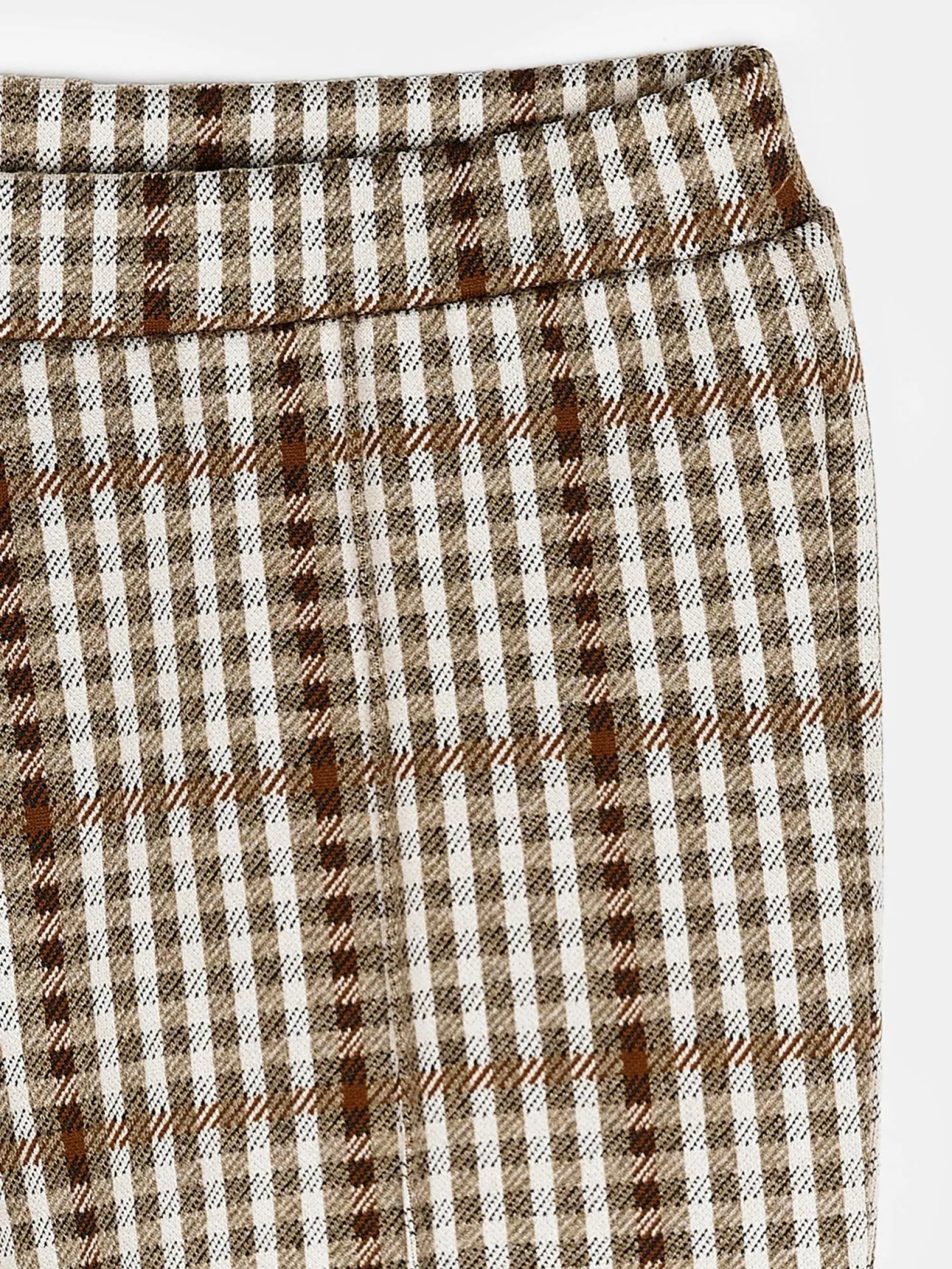 Kolor: beżowyKrój: dzwonTyp: spodnieDługość: dlugiePattern style: w krate, wzorzysteDetal: z elastyczną opaskąPł…