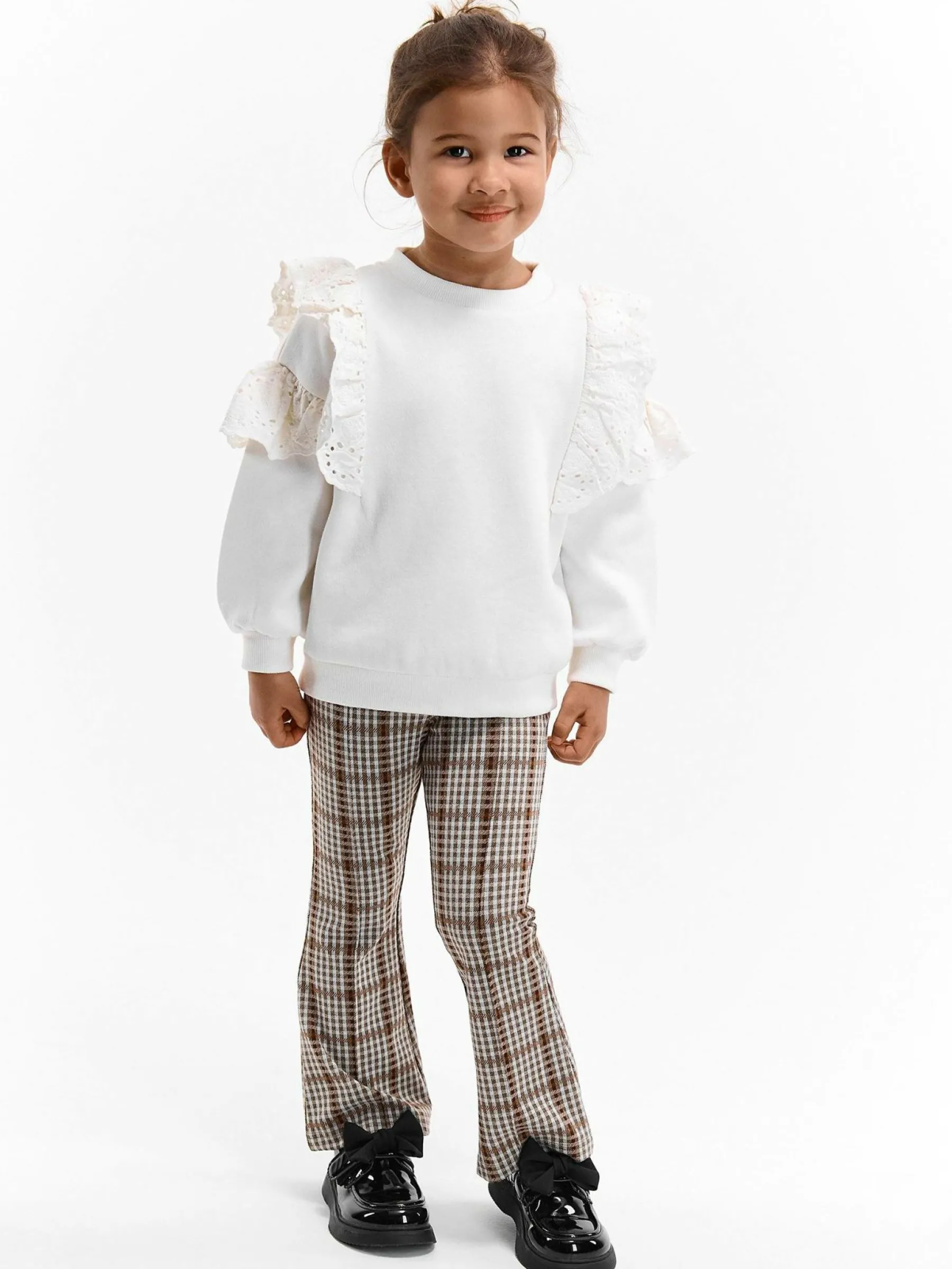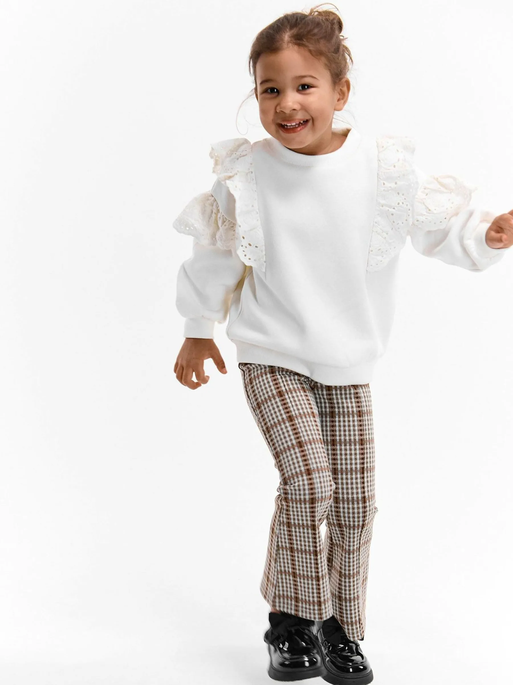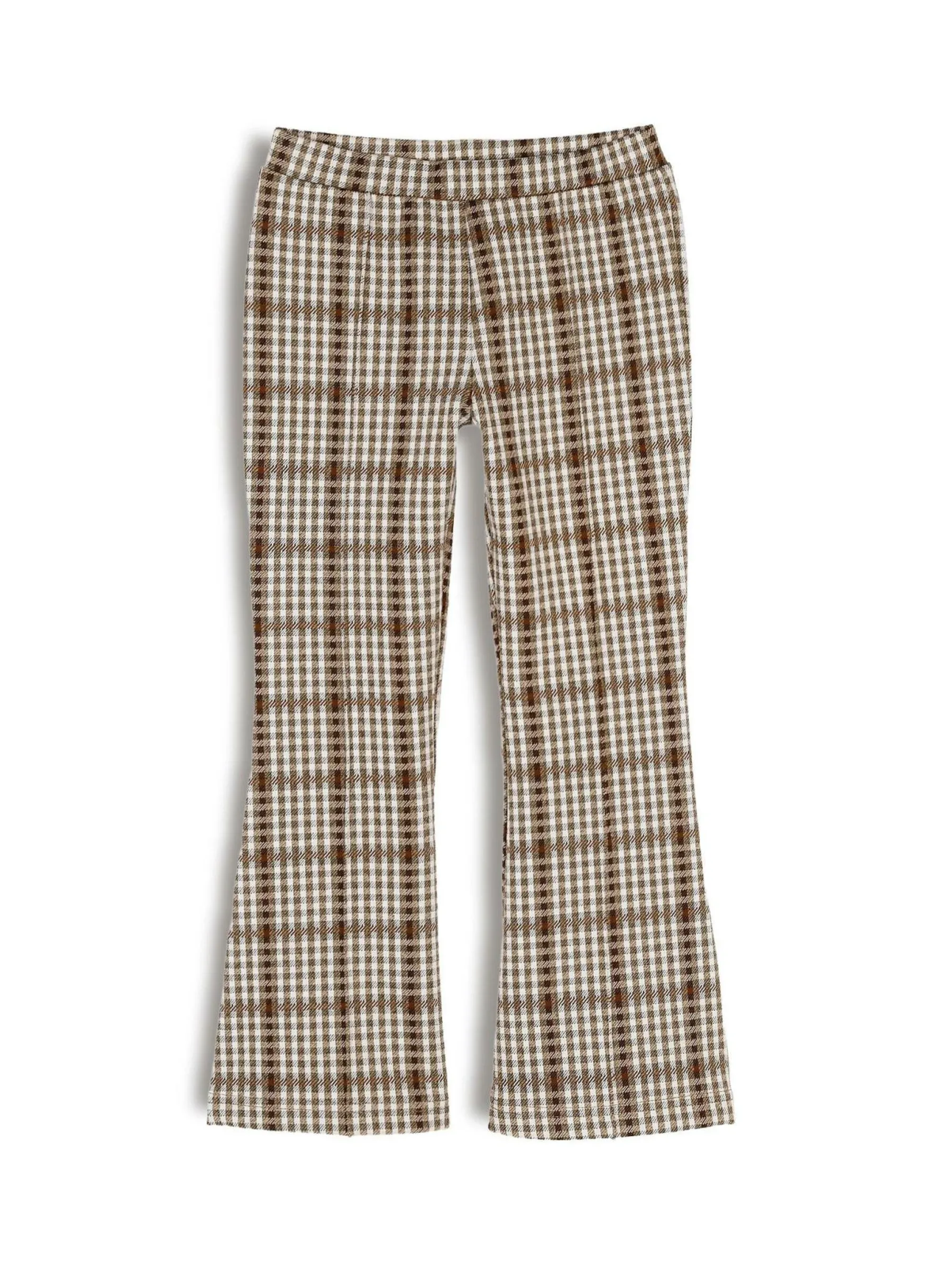 Kolor: beżowyKrój: dzwonTyp: spodnieDługość: dlugiePattern style: w krate, wzorzysteDetal: z elastyczną opaskąPł…
