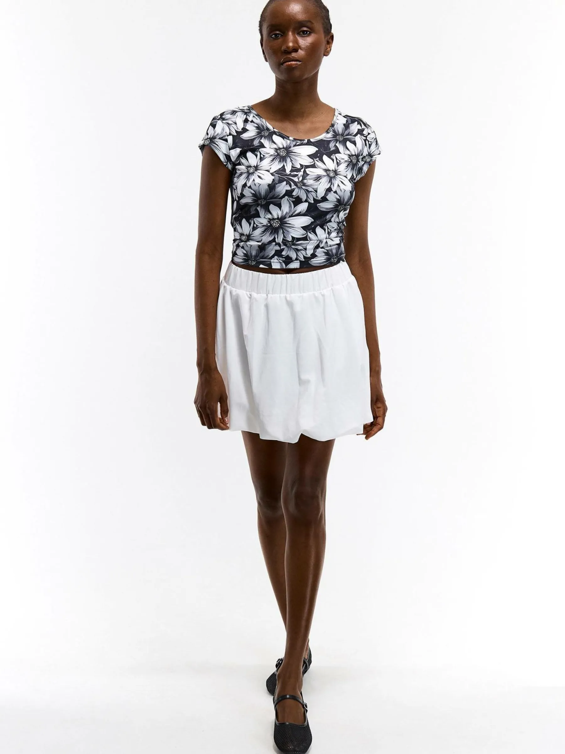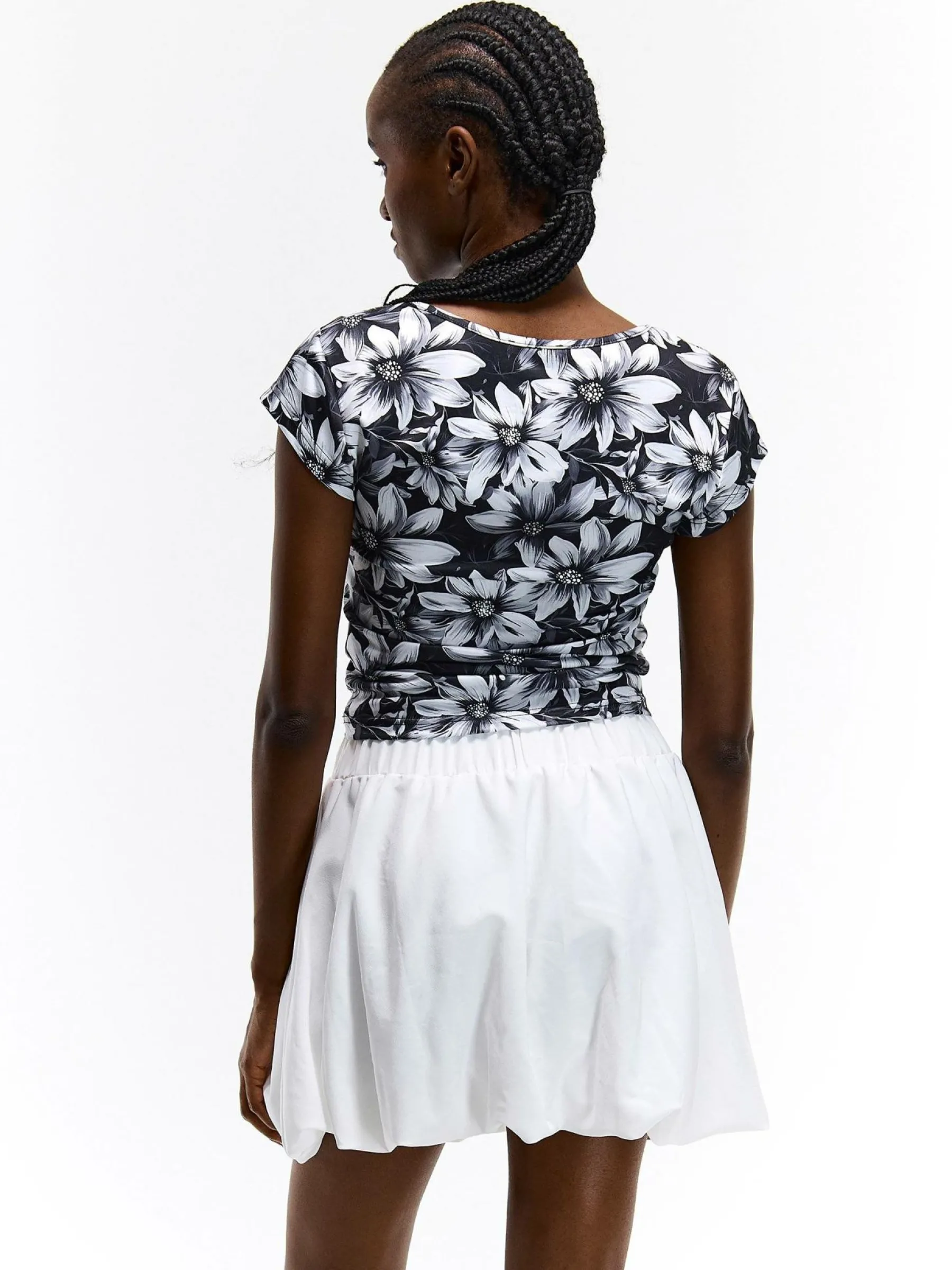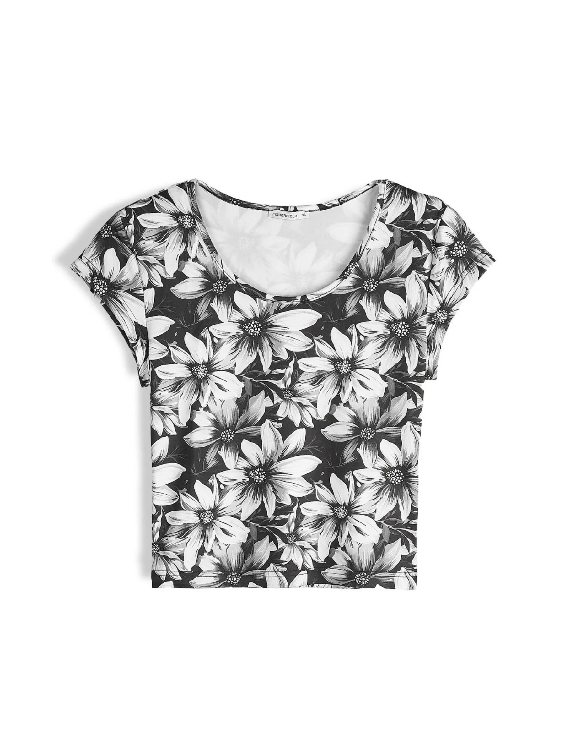 Kolor: czarnyKrój: regularTyp: topRekaw: krótki rękawDługość: krótki topPattern style: z nadrukiem, kwiatoweDetal…
