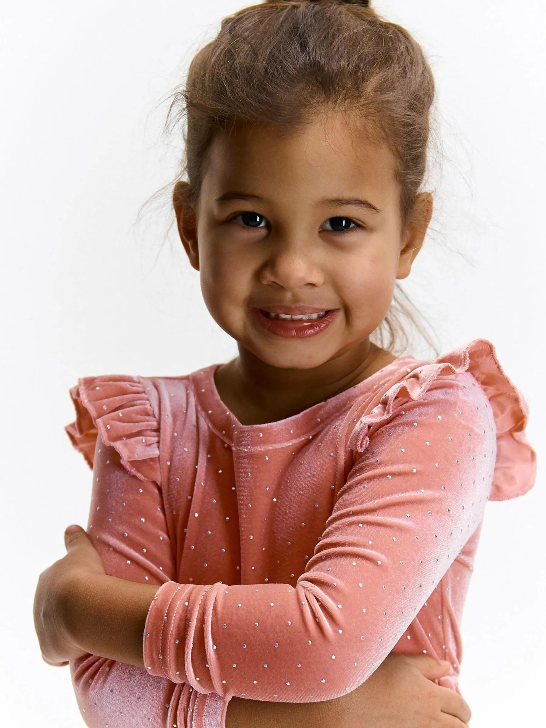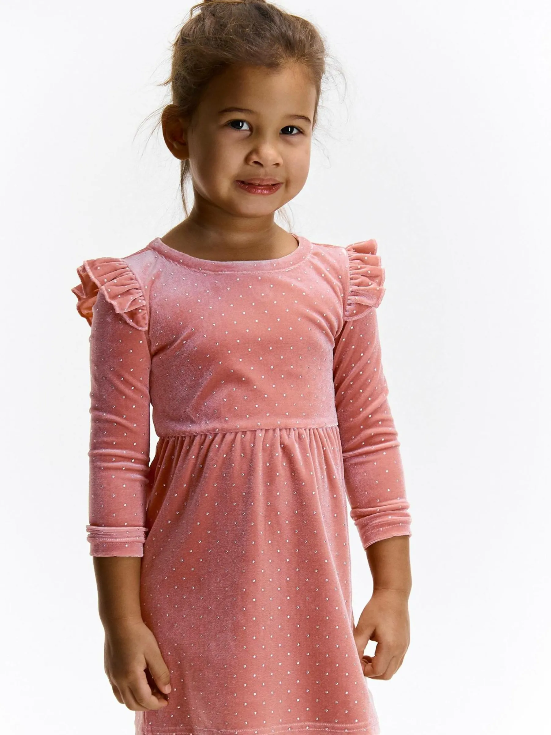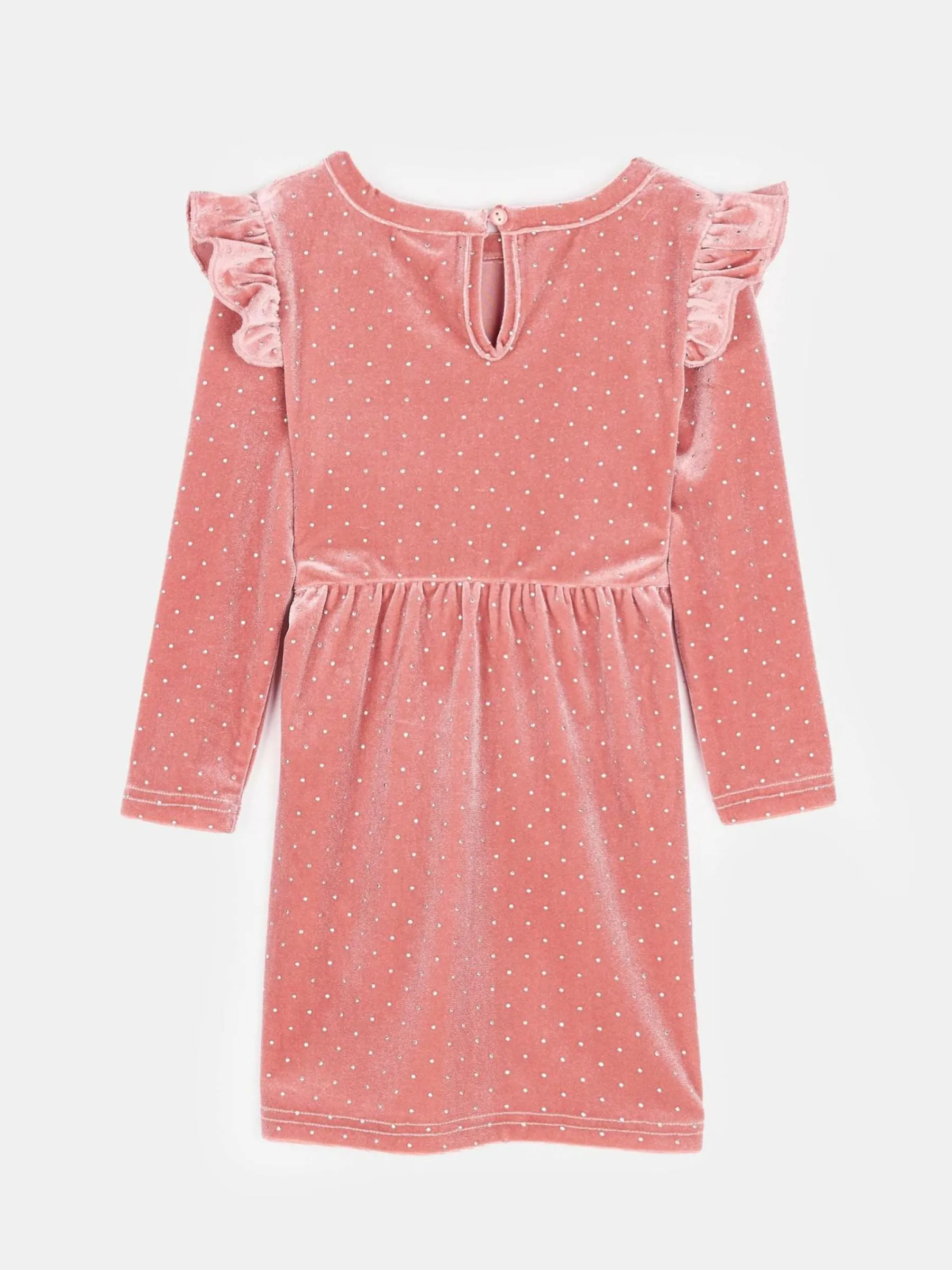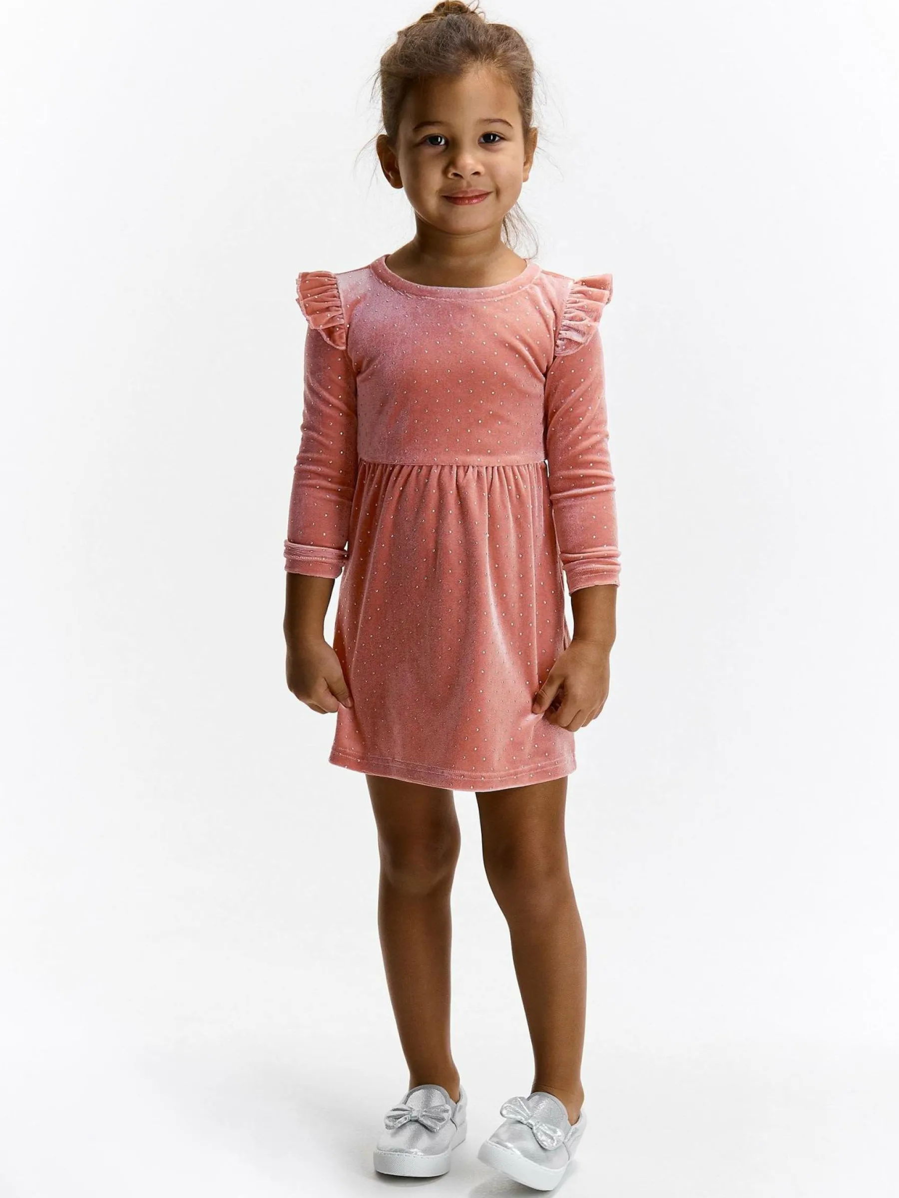Kolor: różowyKrój: z falbanąTyp: sukienkaRekaw: długi rękawDługość: miniPattern style: pojedynczy kolorDetal: n…
