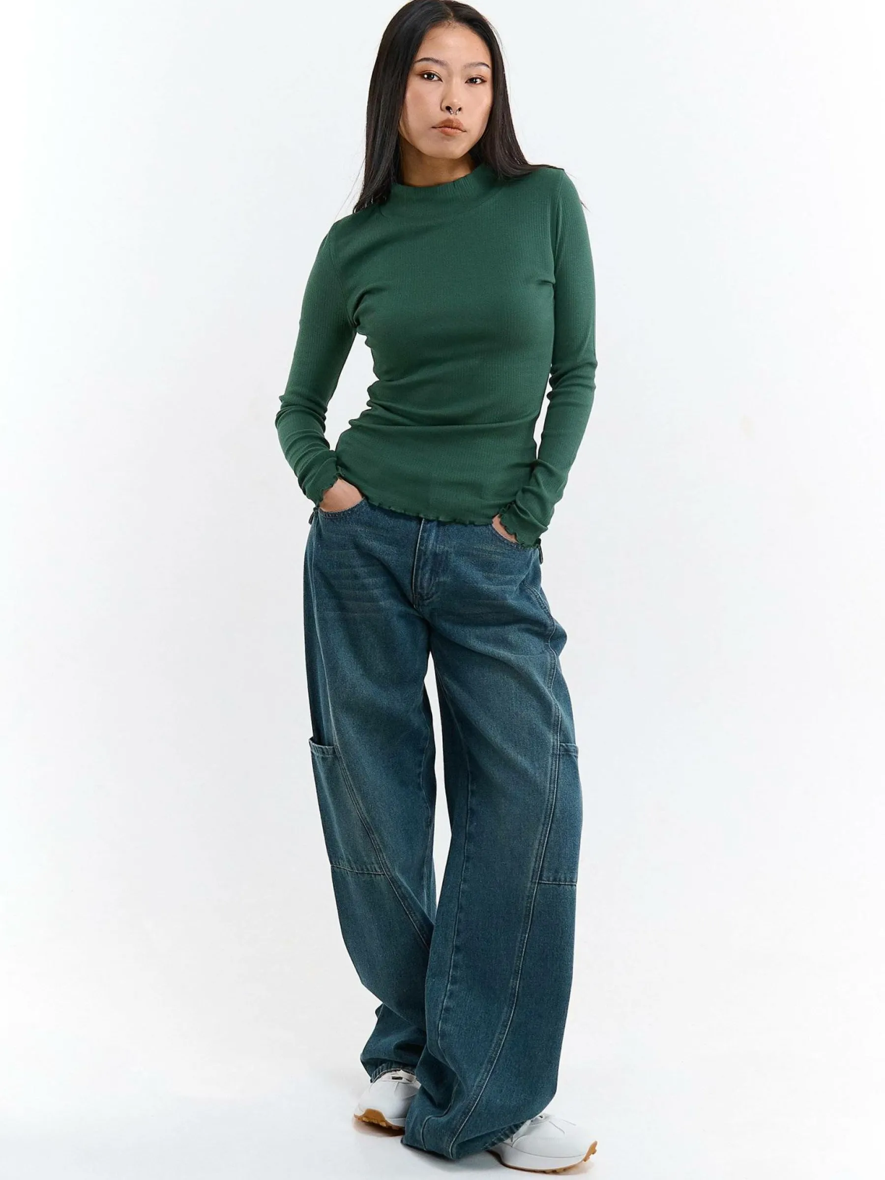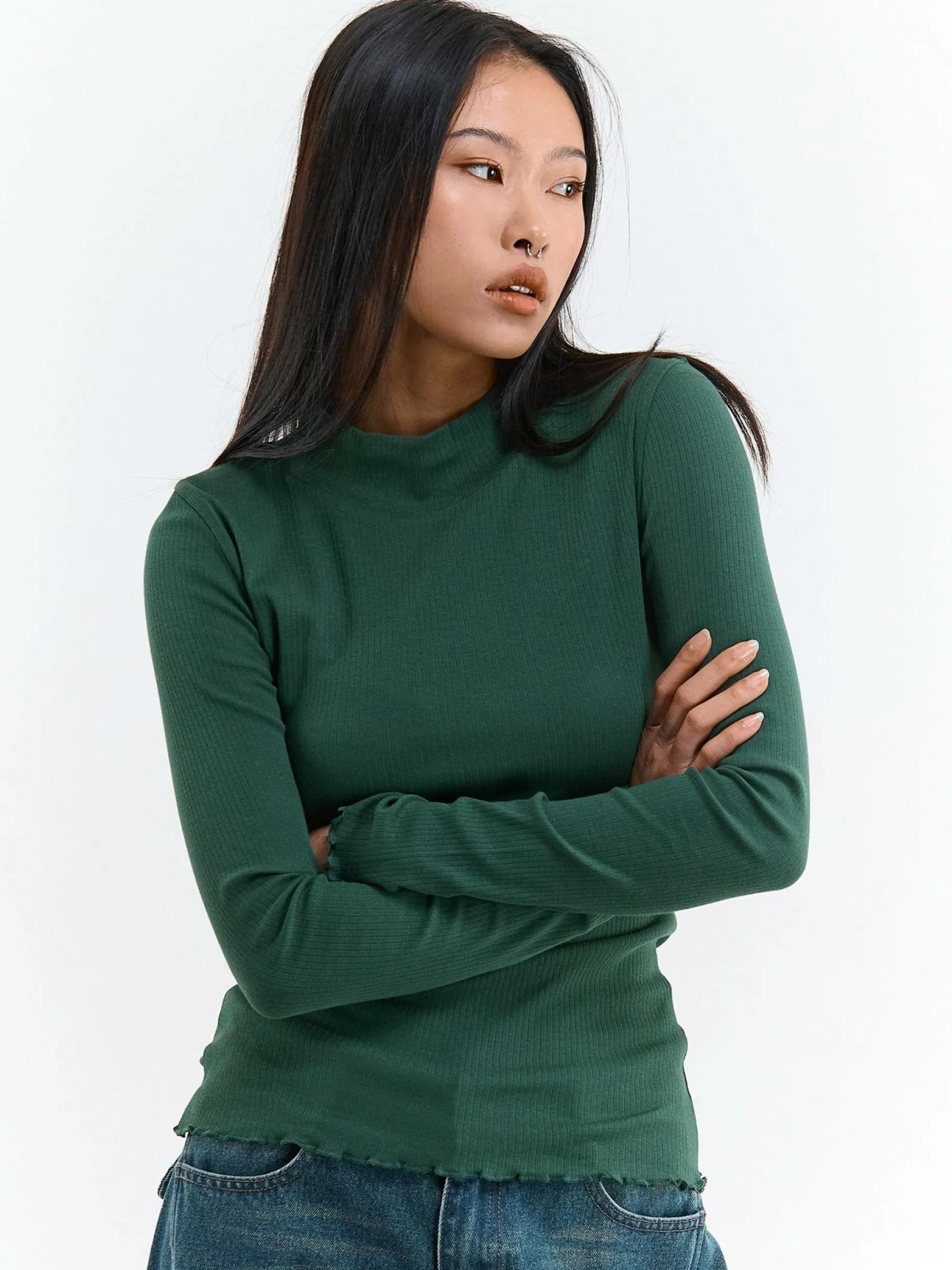 Kolor: zielonyKrój: regularTyp: golfRekaw: długi rękawDługość: krótkiPattern style: pojedynczy kolor, żebrowanyD…
