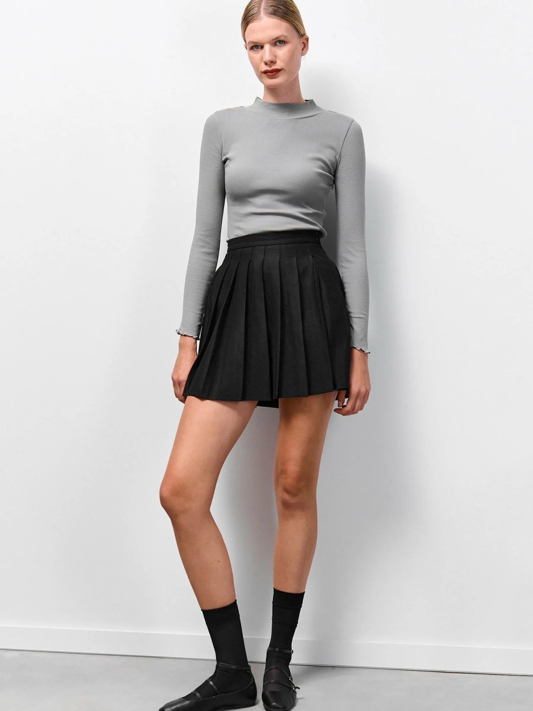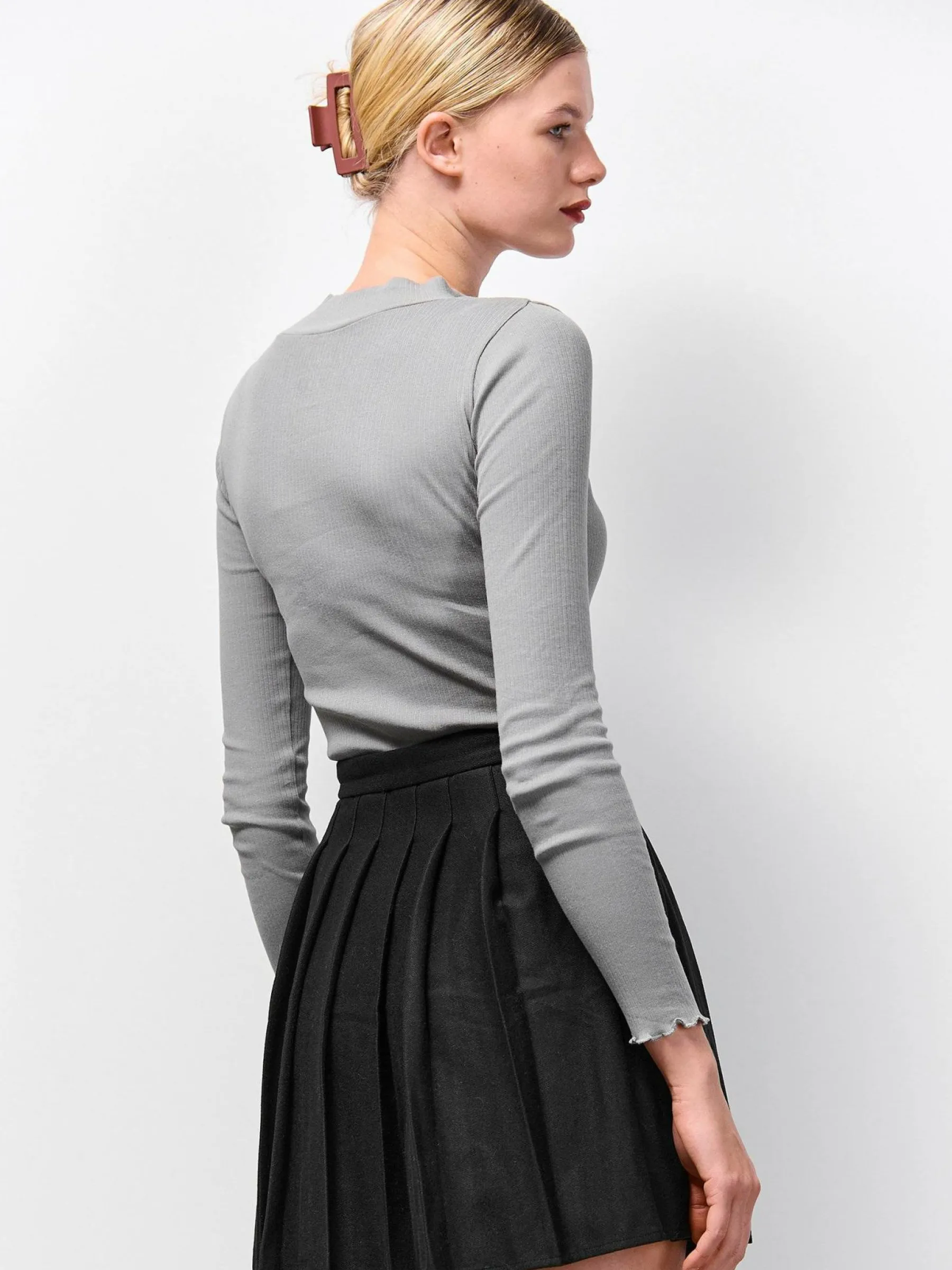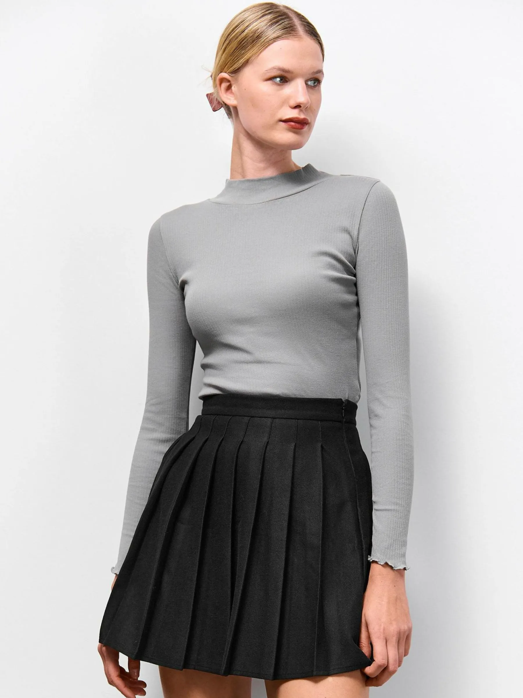 Kolor: szaryKrój: regularTyp: golfRekaw: długi rękawDługość: krótkiPattern style: pojedynczy kolor, żebrowanyDet…