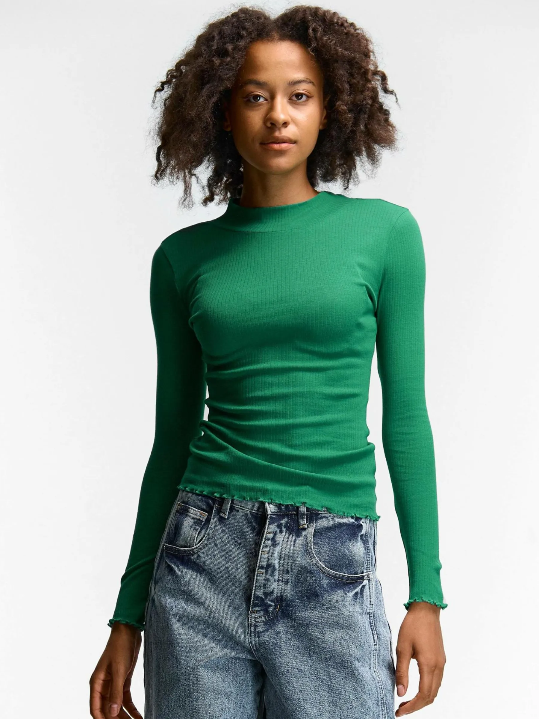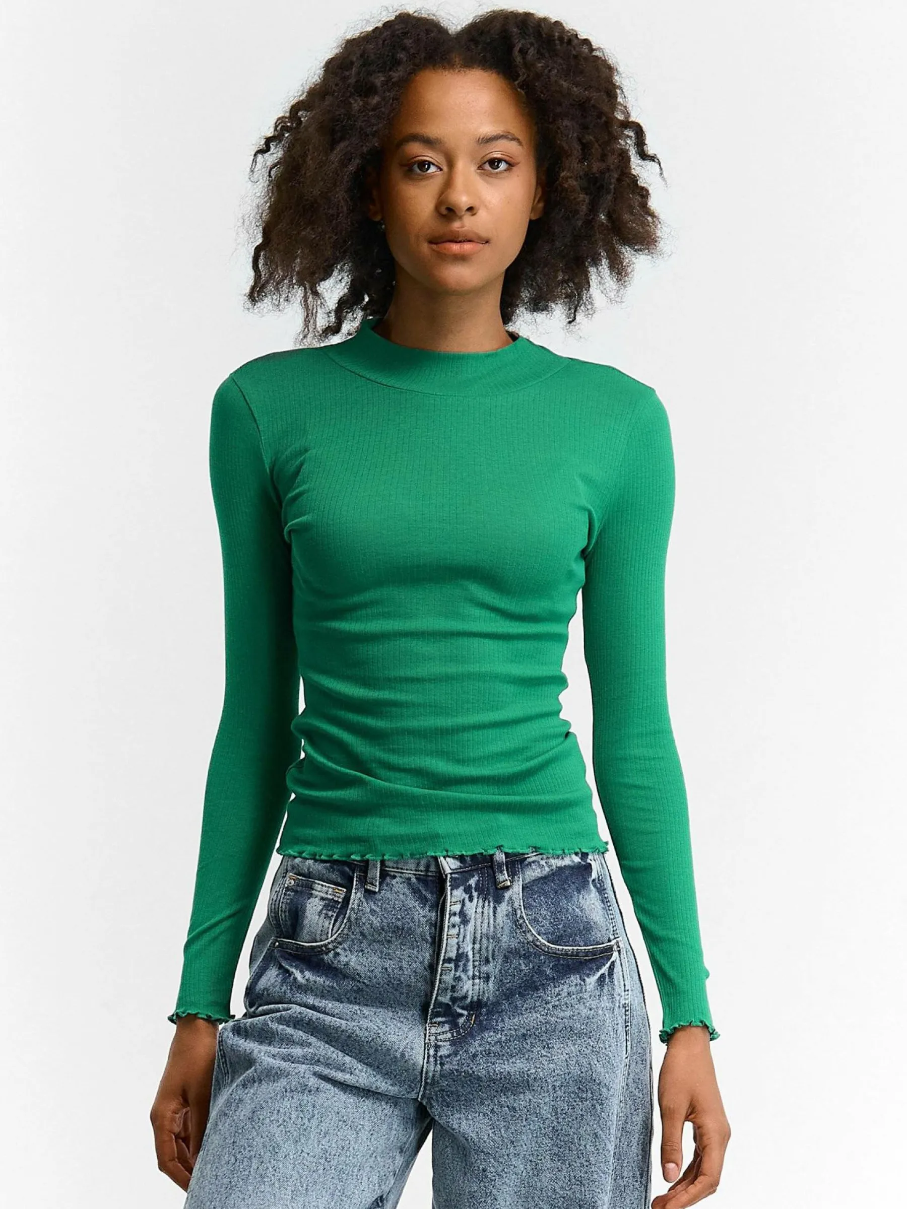 Kolor: zielonyKrój: regularTyp: golfRekaw: długi rękawDługość: krótkiPattern style: pojedynczy kolor, żebrowanyD…