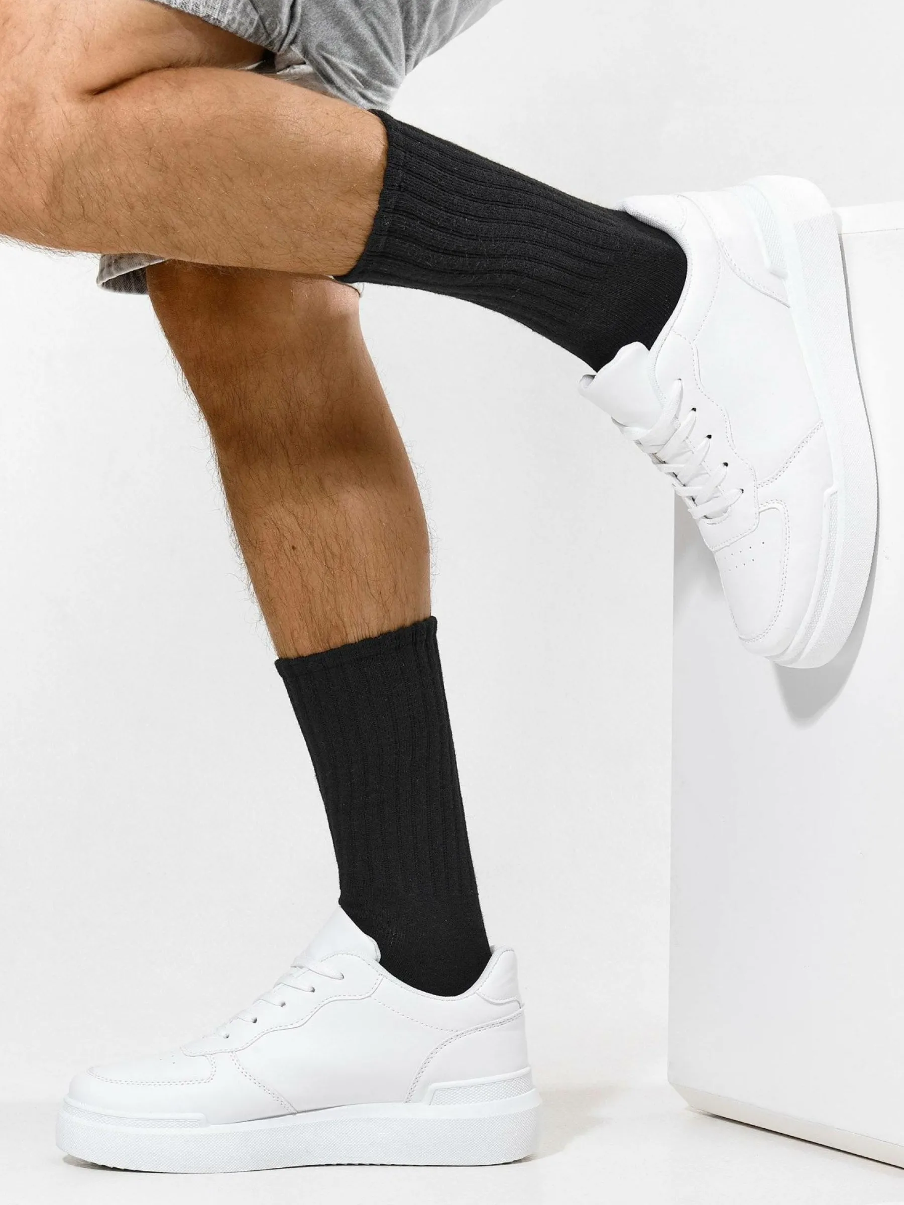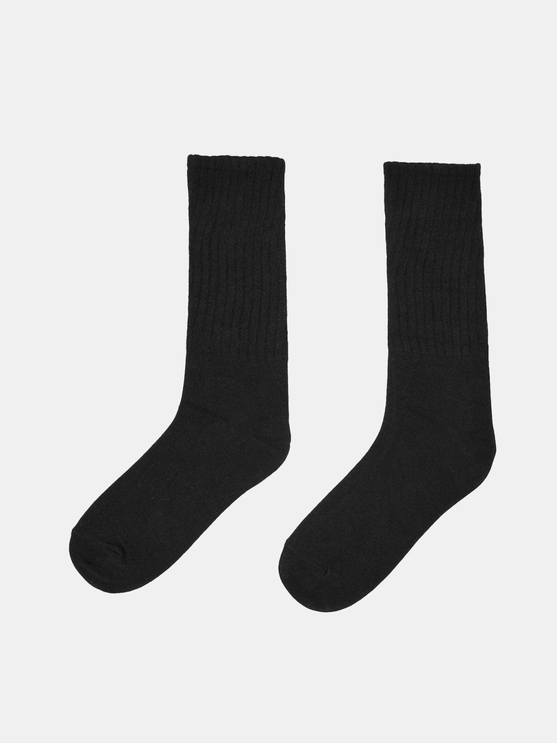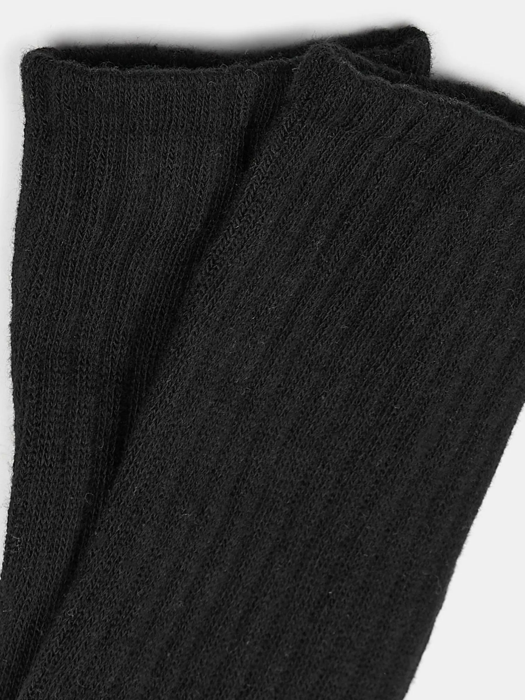 Kolor: czarnyKrój: wysokie skarpetyTyp: skarpetyPattern style: pojedynczy kolor, żebrowanyMateriał: mieszanyPłeć: m…
