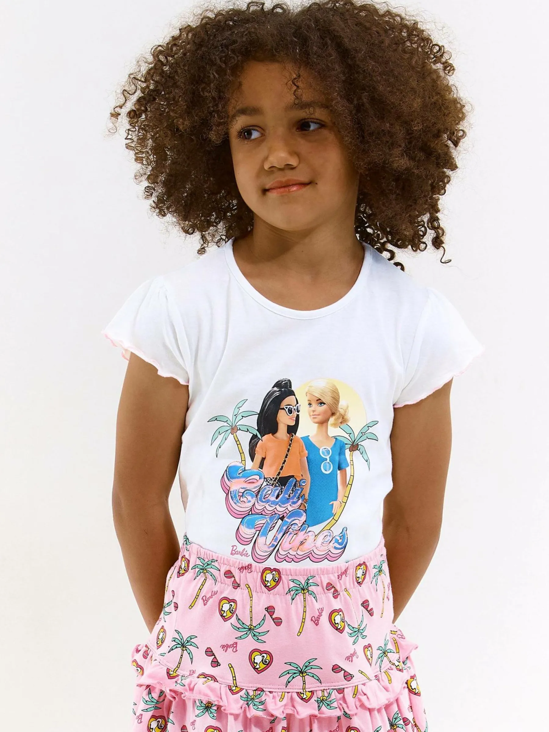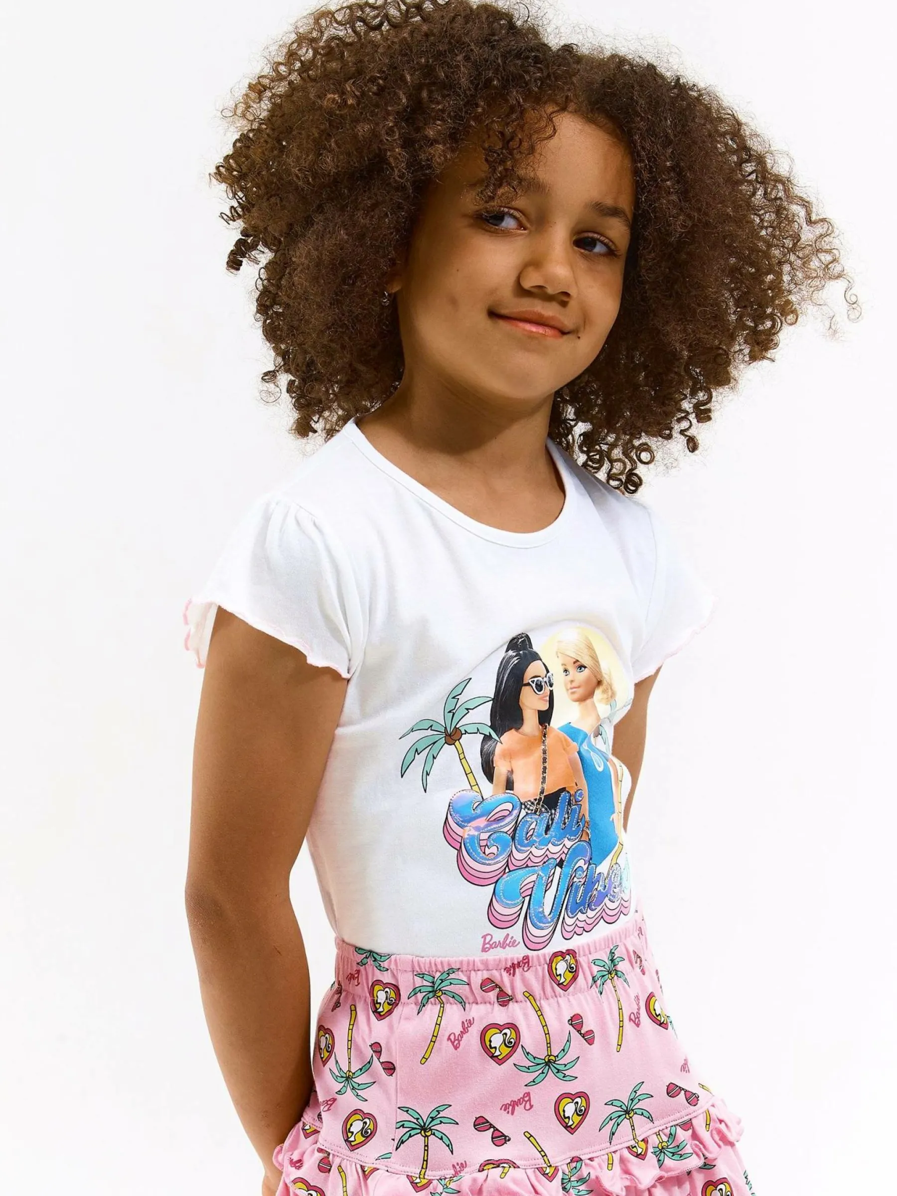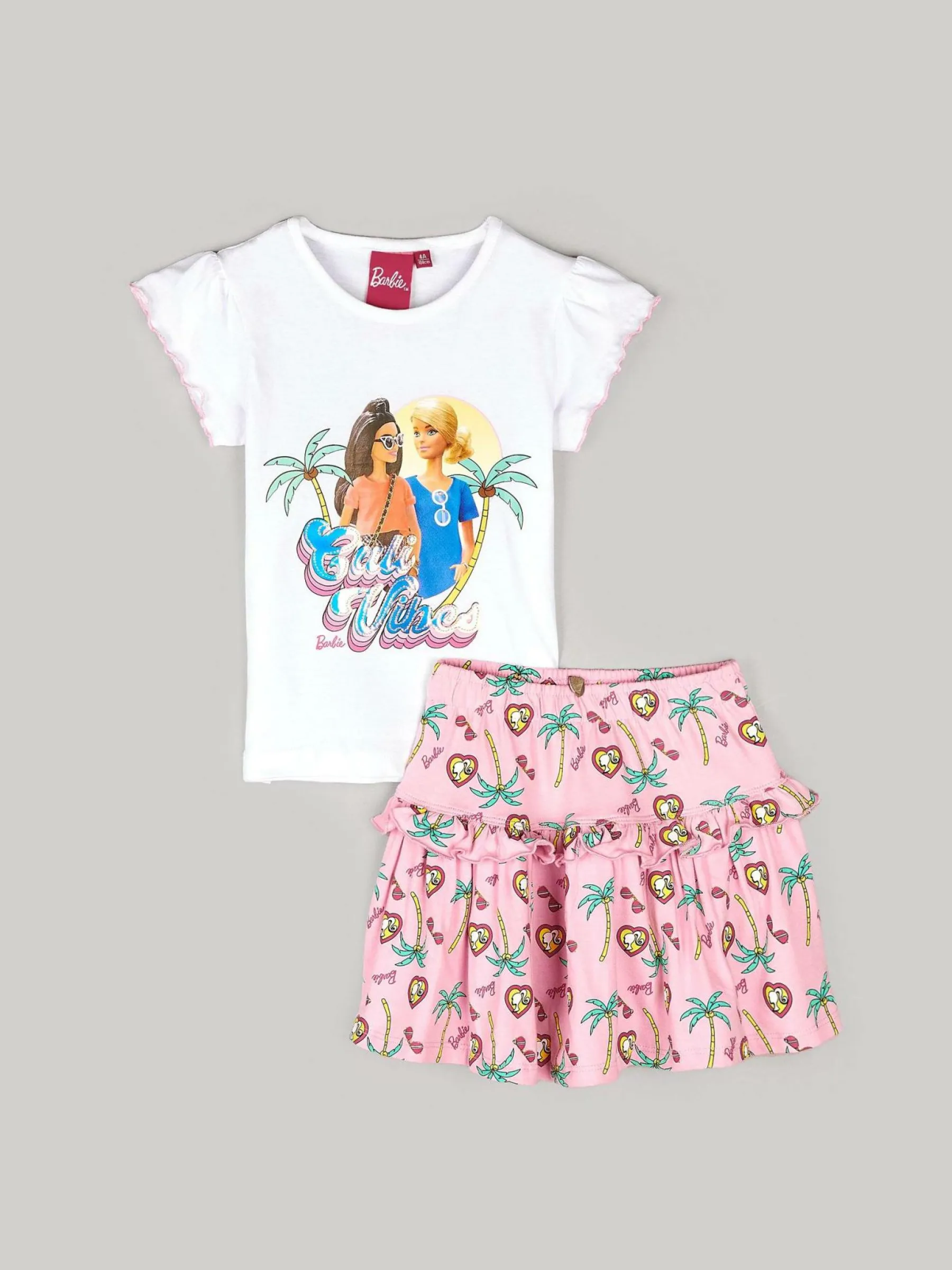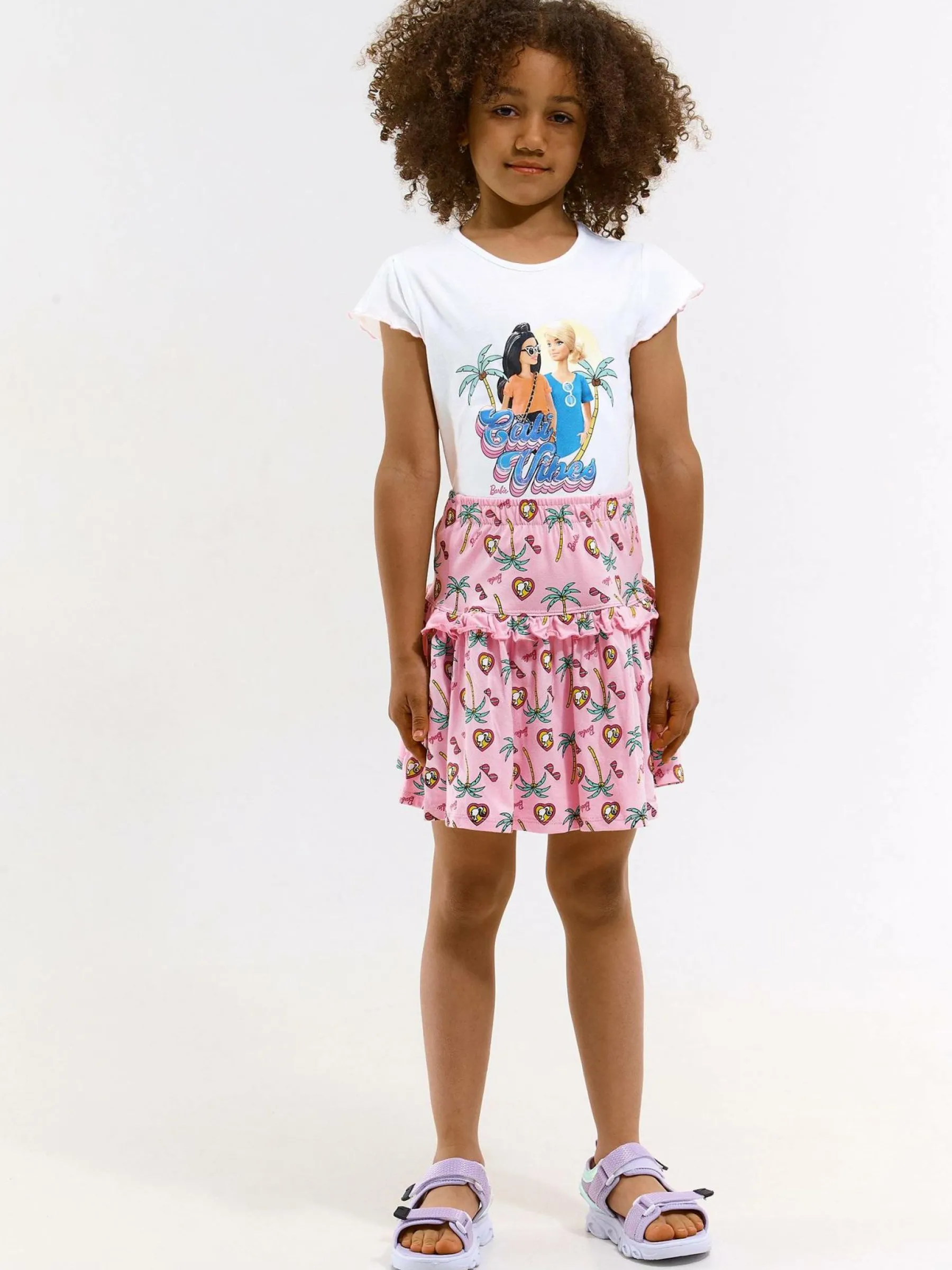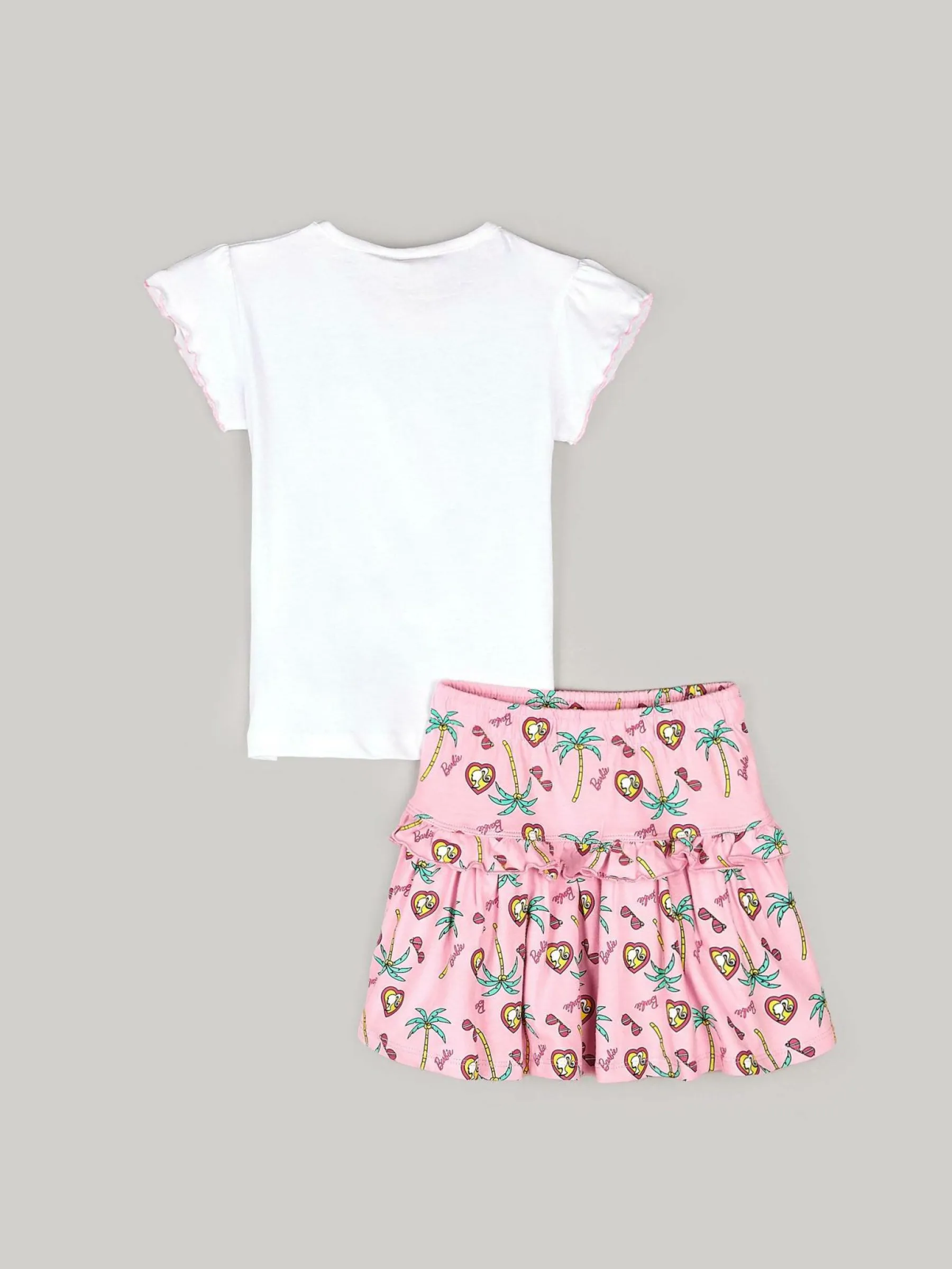 Kolor: białyKrój: z falbanąTyp: spódnica, koszulkaRekaw: krótki rękawDługość: krótki, miniPattern style: z nad…