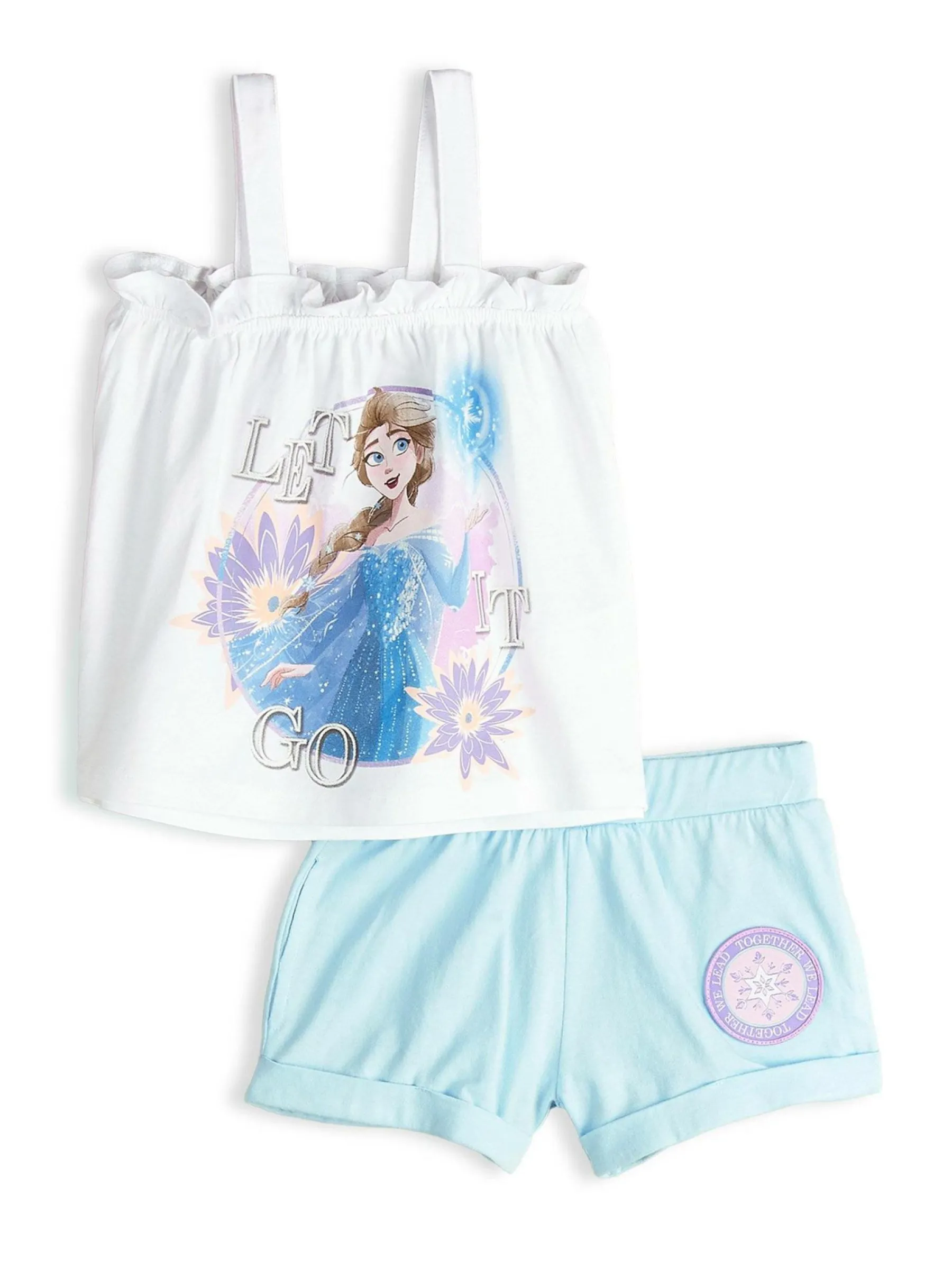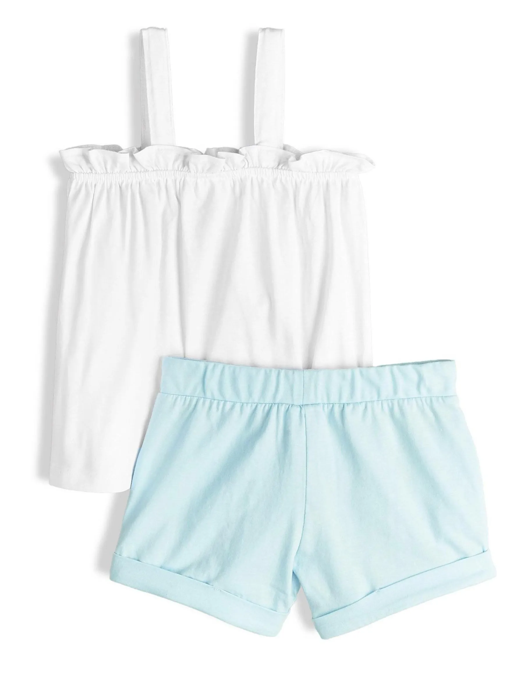 Kolor: niebieskiKrój: z falbaną, regularTyp: podkoszulek, spodenkiRekaw: bez rękawówDługość: krótkiPattern style…