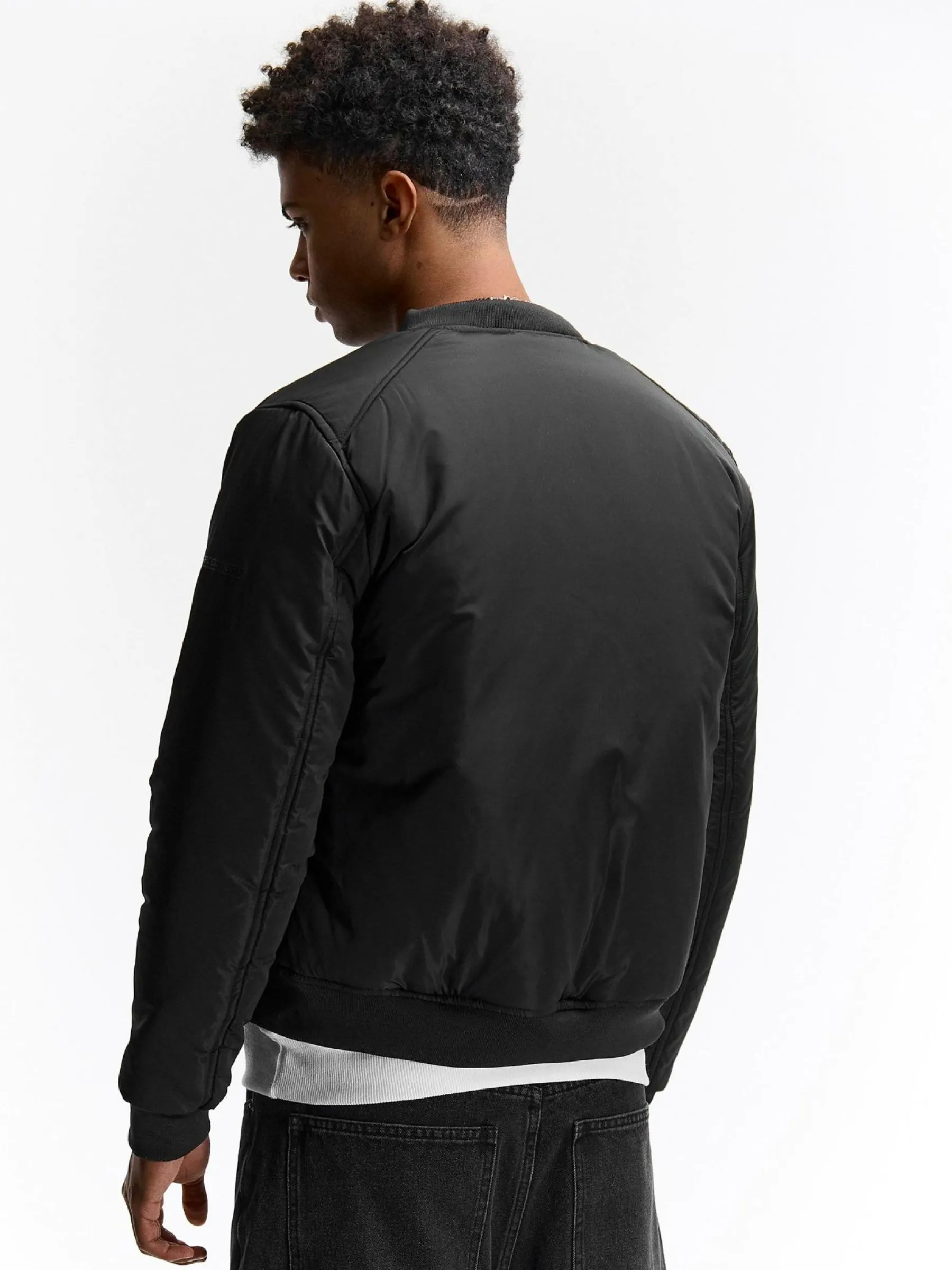 Kolor: czarnyKrój: bomberTyp: kurtka zimowaRekaw: długi rękawDługość: krótkiPattern style: pojedynczy kolorDetal:…