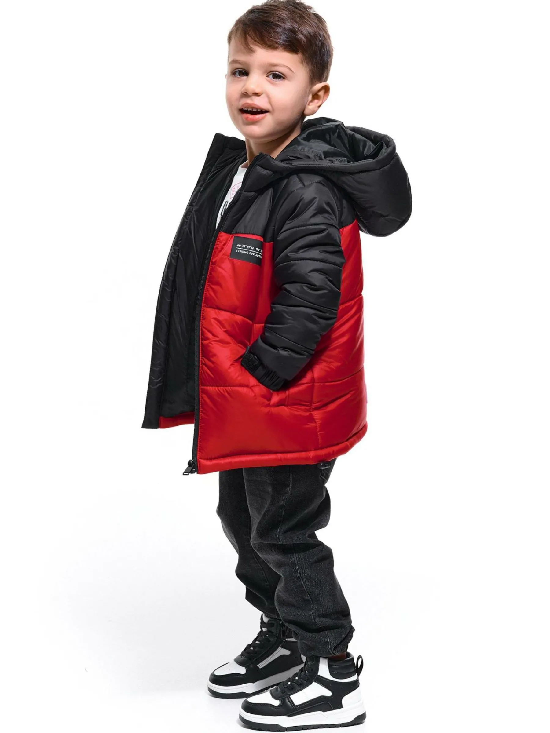 Kolor: czerwonyKrój: pikowaneTyp: kurtka zimowaRekaw: długi rękawDługość: krótkiPattern style: colour blockDetal:…