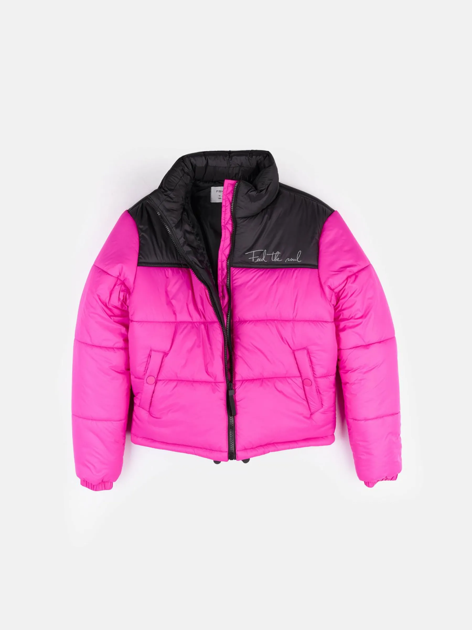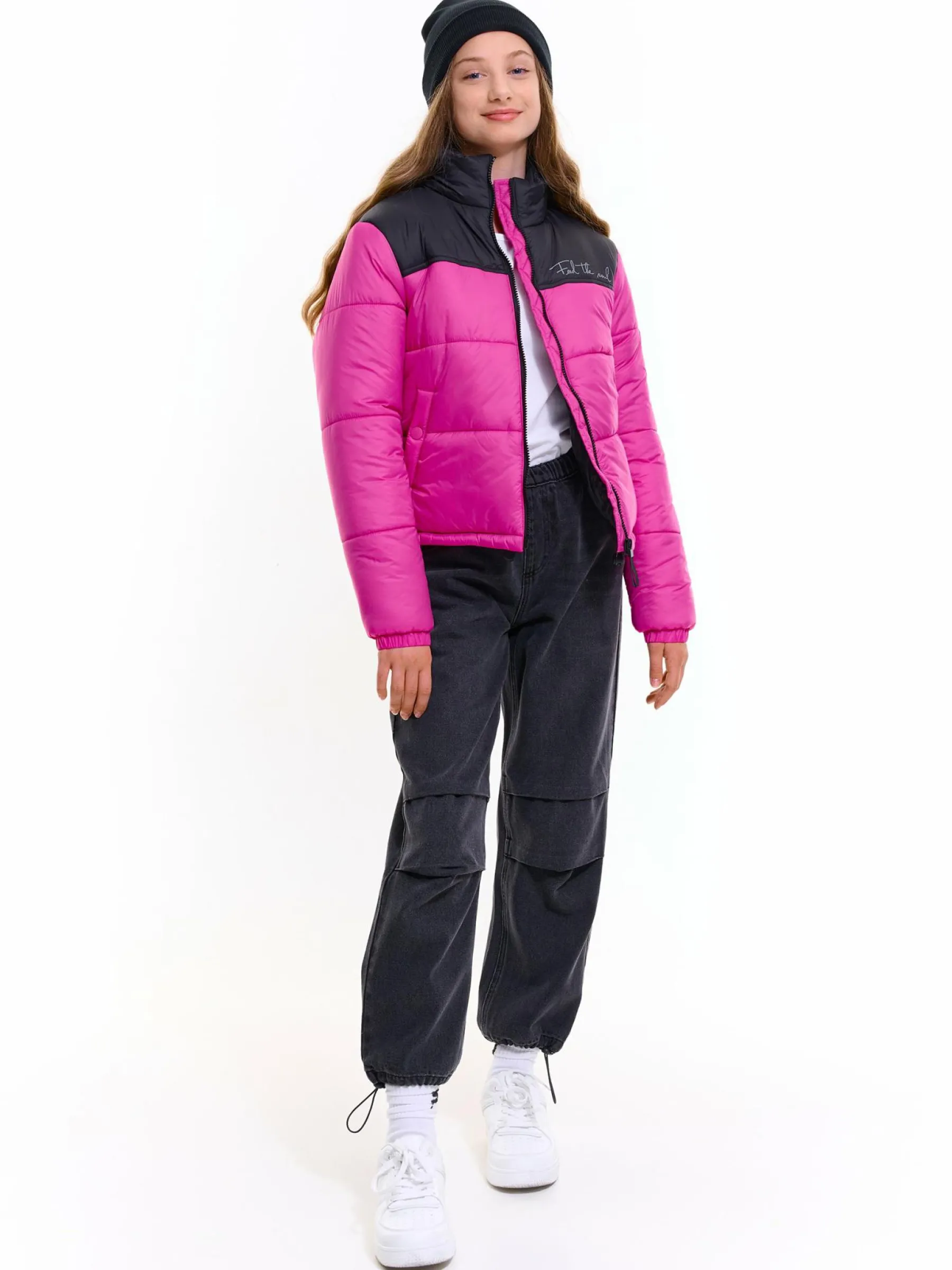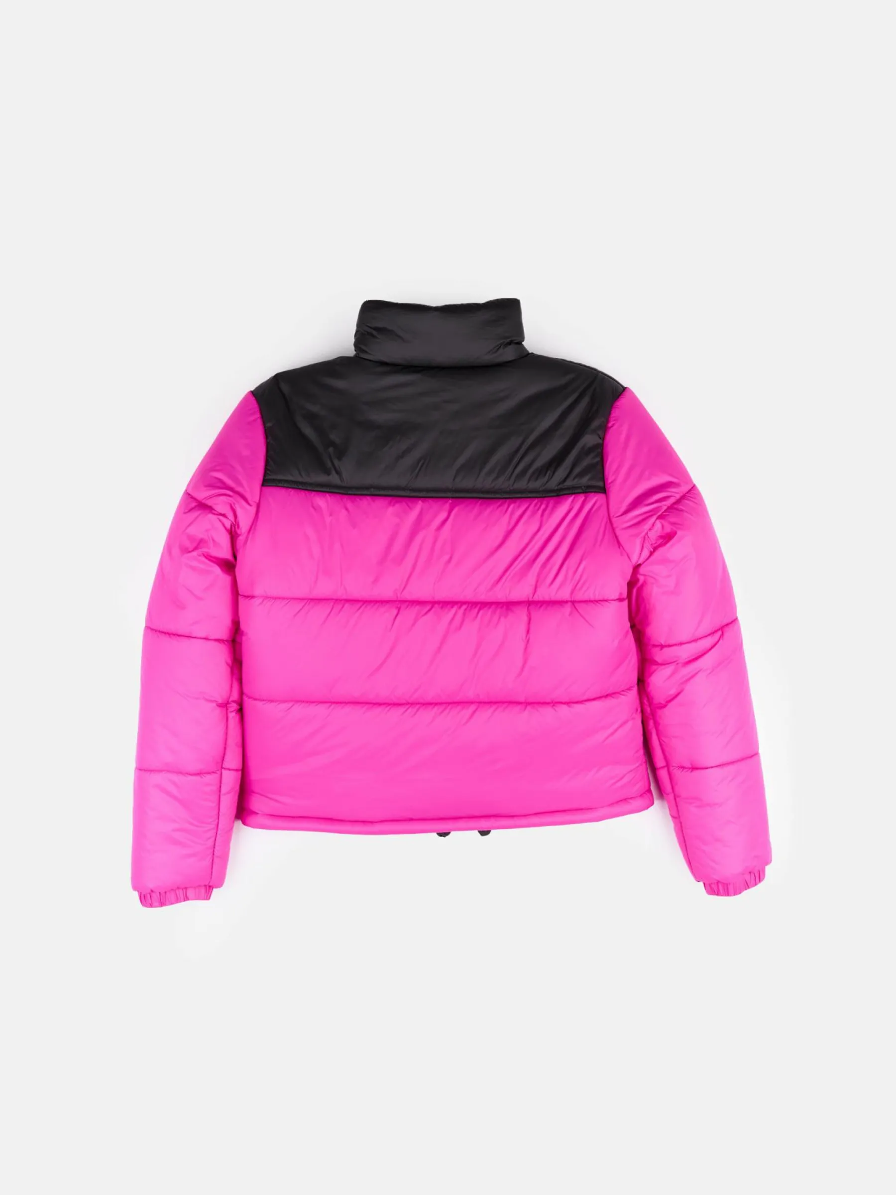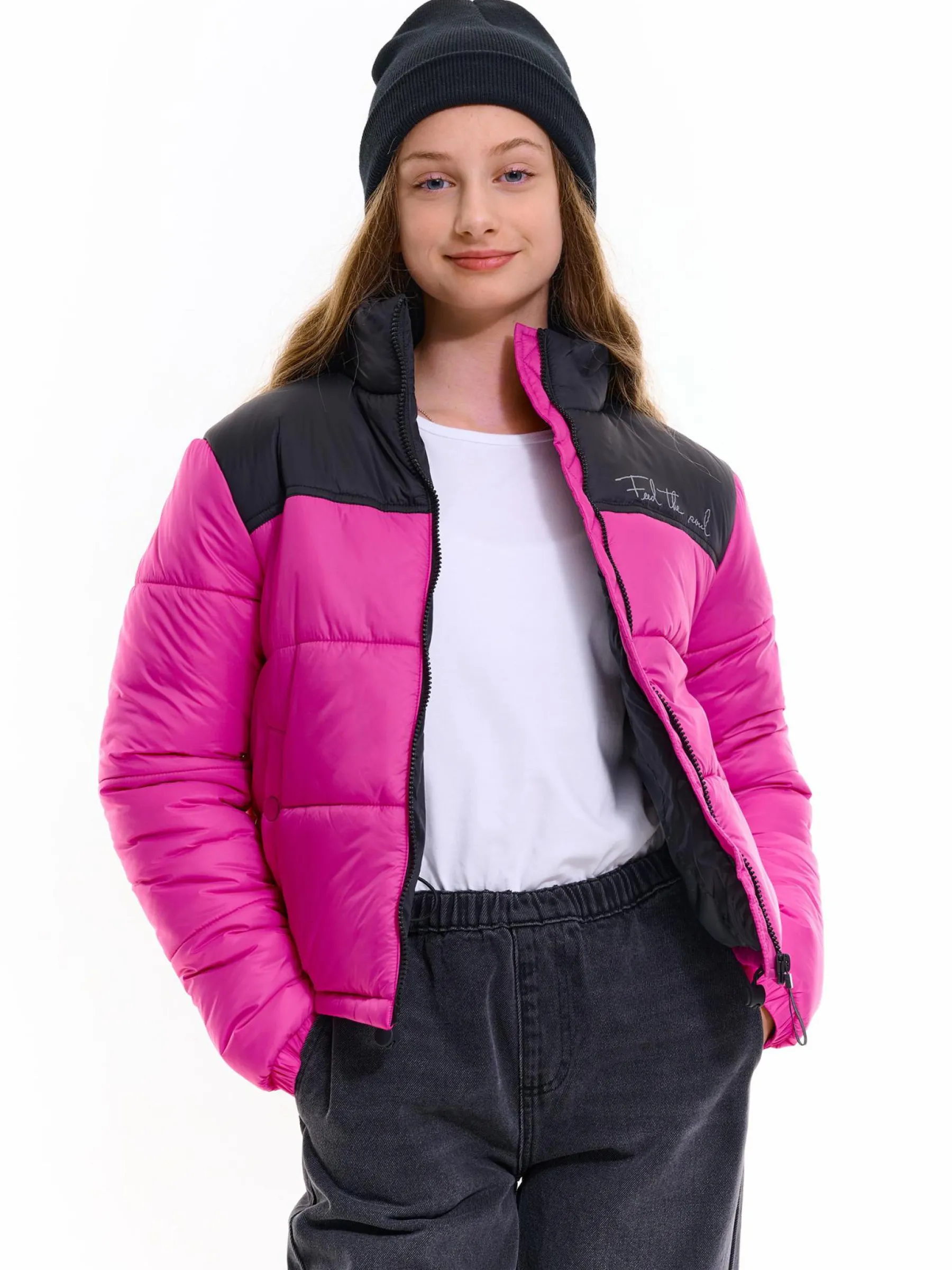 Kolor: różowyKrój: podstawowyTyp: kurtka zimowaRekaw: długi rękawDługość: krótkiPattern style: colour blockDeta…