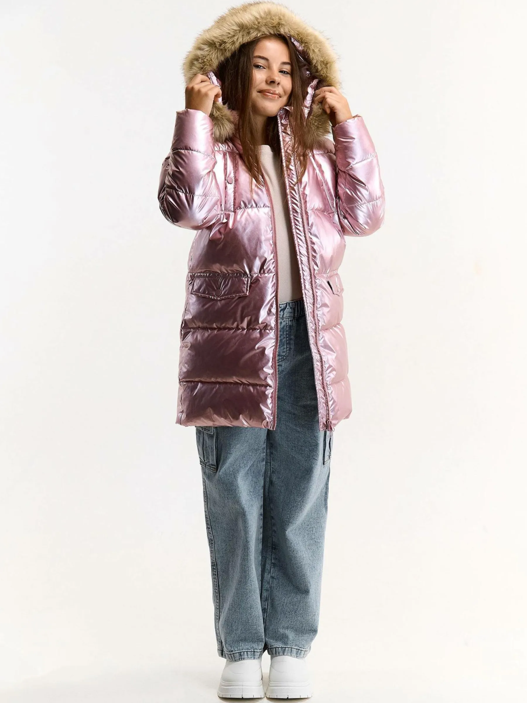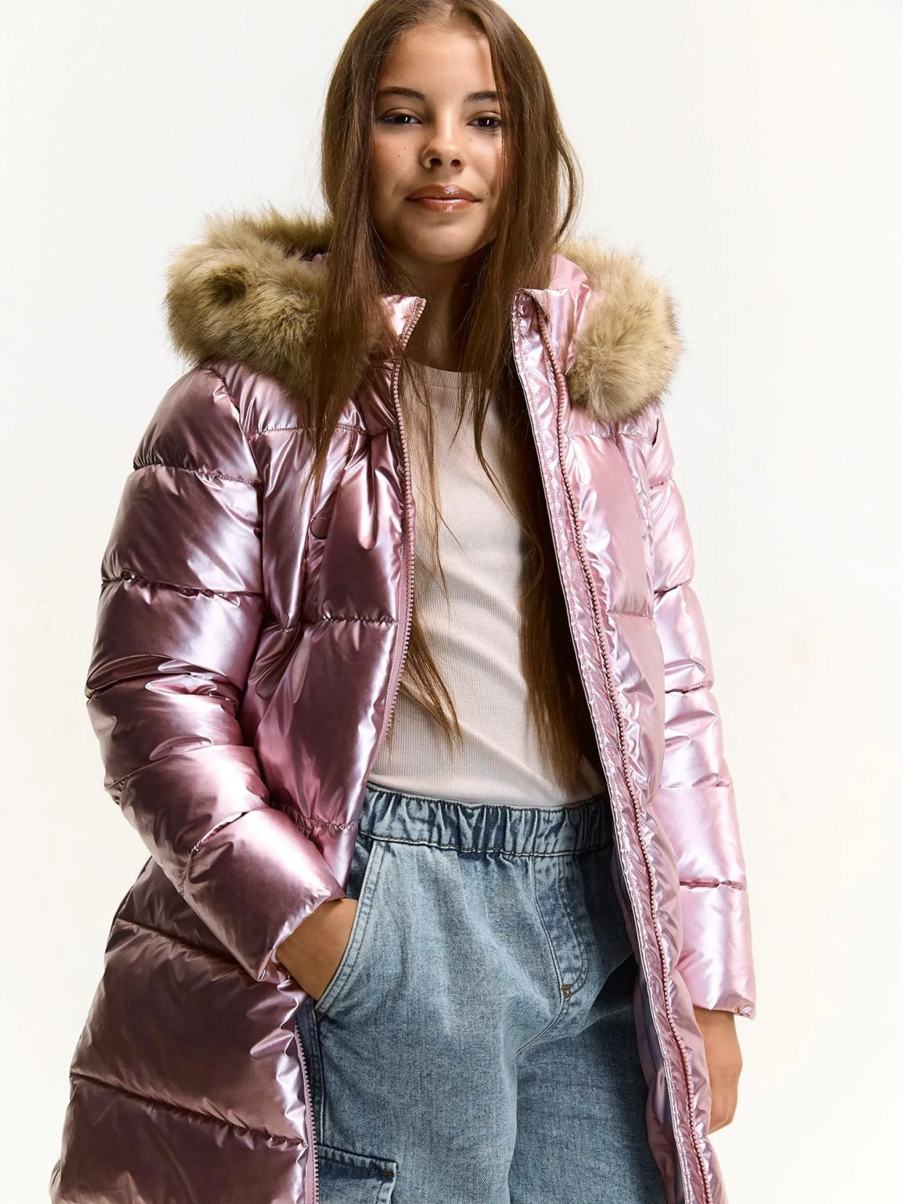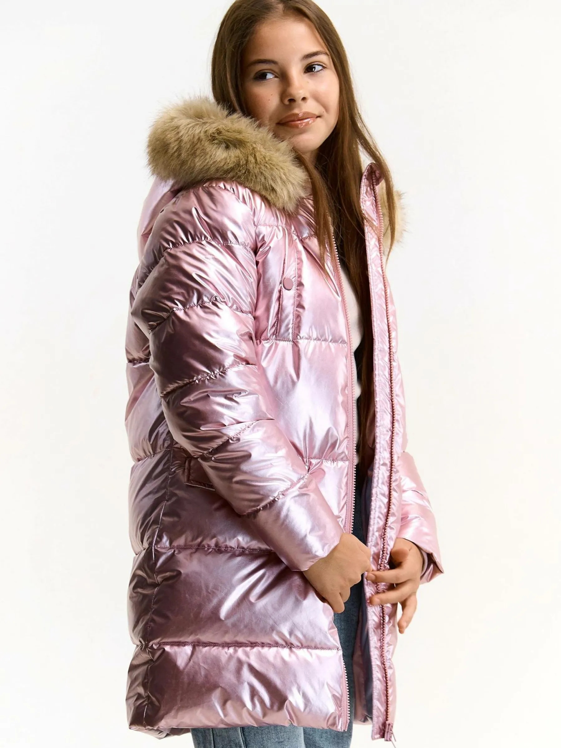 Kolor: różowyKrój: pikowaneTyp: kurtka zimowaRekaw: długi rękawDługość: dlugiePattern style: pojedynczy kolorDet…